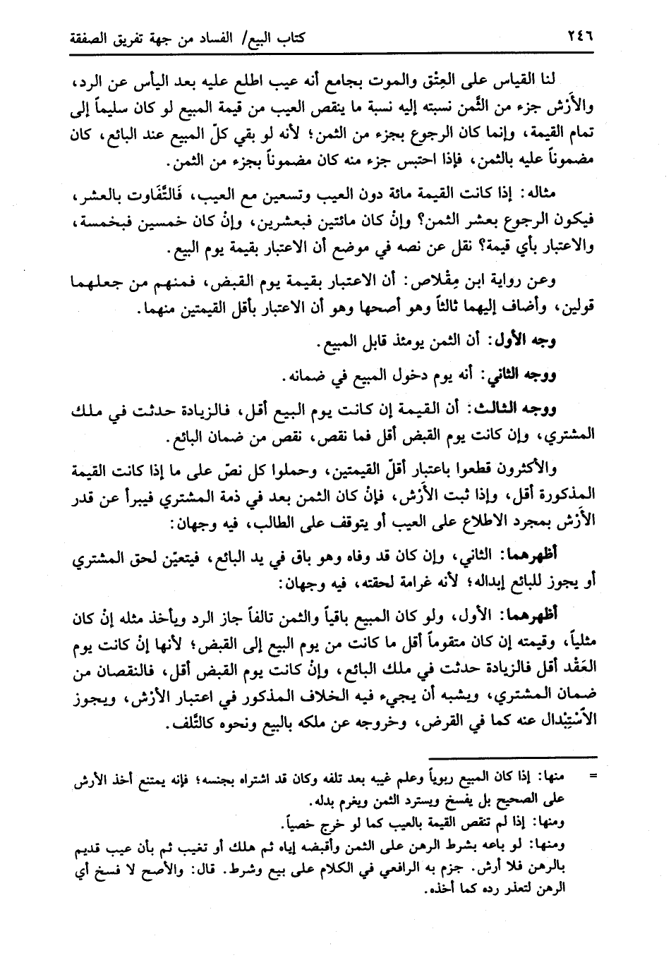 ووجه الثالث: أن القيمة إن كانت يوم البيع أقل، فالزيادة حدثت في ملك المشتري، وإن كانت يوم القبض أقل فما نقص، نقص من ضمان البائع.