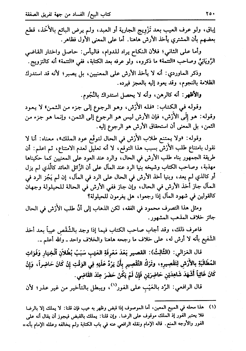 ومثل هذا التصرف محمود في الفقه، لكن الذهاب إلى أنَّ طلب الأَرْش في الحال جائز خلاف المذهب المشهور.