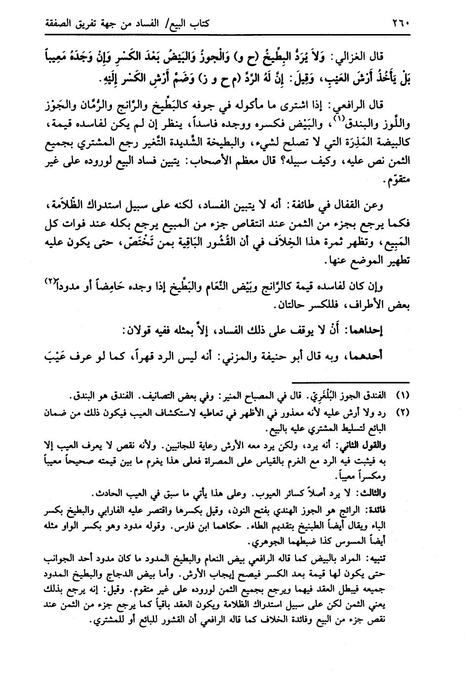 قال الغزالي: وَلاَ يُرَدُّ البِطِّيخُ (ح و) وَالْجوزُ وَالبَيْضُ بَعْدَ الكَسْرِ وَإِنْ وَجَدَهُ مَعِيباً بَلْ يَأَخُذُ أَرْشَ العَيْبِ، وَقِيلَ: إِنَّ لَهُ الرَّدَّ (م ح وز) وَضَمَّ أَرْشِ الكَسْر إِلَيْهِ.