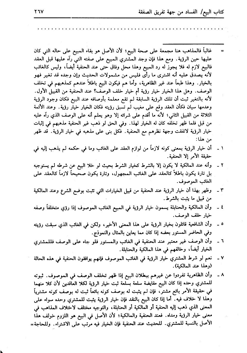 1 - أن خيار الرؤية بمعنى كونه لازماً من لوازم العقد على الغائب وما في حكمه لم يذهب إليه في حقيفة الأمر إلا الحنفية.