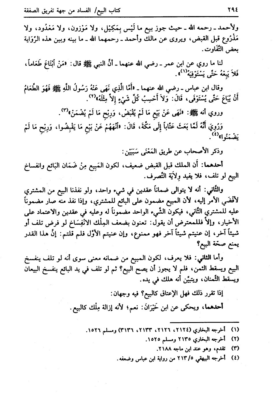 وقال ابن عباس -رضي الله عنهما- "أَمَّا الَّذِي نَهَى عَنْهُ رَسُولُ اللَّهِ -صلى الله عليه وسلم- فَهُوَ الطَّعَامُ أَنْ يُبَاعَ حَتَّى يُسْتَوفَى، قَالَ: وَلاَ أَحْسِبُ كُلَّ شَيْءٍ إِلاَّ مِثْلَهُ" (¬2).