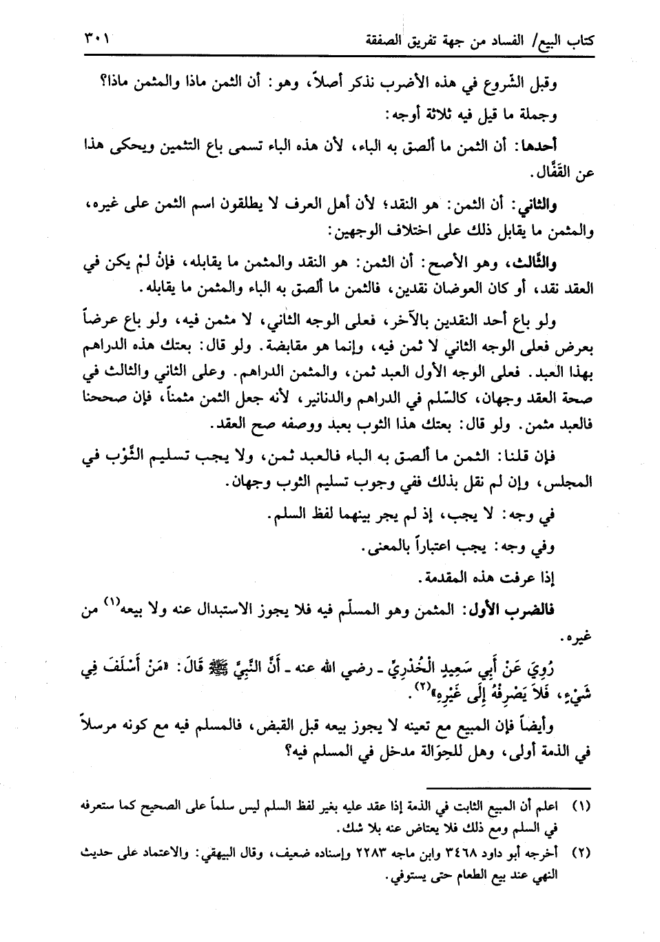 رُوِيَ عَنْ أَبي سَعِيدٍ الْخُدْرِيِّ -رضي الله عنه- أَنَّ النَّبِيَّ -صلى الله عليه وسلم- قَالَ: "مَنْ أَسْلَفَ فِي شَيْءٍ، فلاَ يَصْرِفْهُ إِلَى غَيْرِه" (¬2).