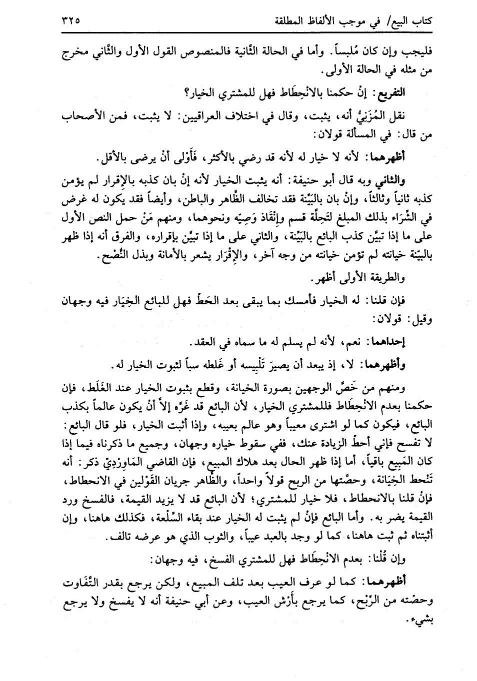 وإن قُلْنا: بعدم الانْحِطَاط فهل للمشتري الفسخ، فيه وجهان: