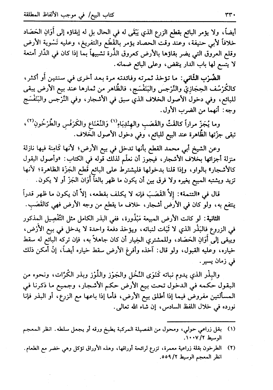 الضَّرْب الثَّاني: ما تؤخذ ثمرته وفائدته مرة بعد أخرى في سنتين أَو أكثر، كالكُرْسُف الحِجَازِيّ والنَّرْجس والبَنَفْسَج، فالظَّاهر من ثمارها عند بيع الأرض يبقى للبائع، وفي دخول الأصول الخلاف الذي سبق في الأشجار، وفي النَّرْجس والبَنَفْسَج وجه: أنهما من الضرب الأول.