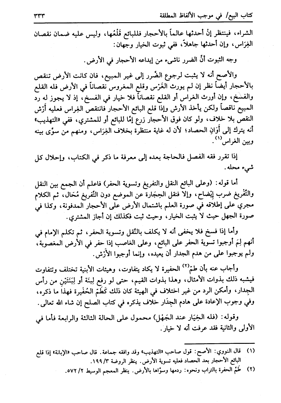 (¬1) قال النووي: الأصح: قول صاحب "التهذيب" وقد وافقه جماعة. قال صاحب "الإبانة" إذا قلع البائع الأحجار بعد الحصاد فعليه تسوية الأرض. ينظر الروضة 3/ 199.