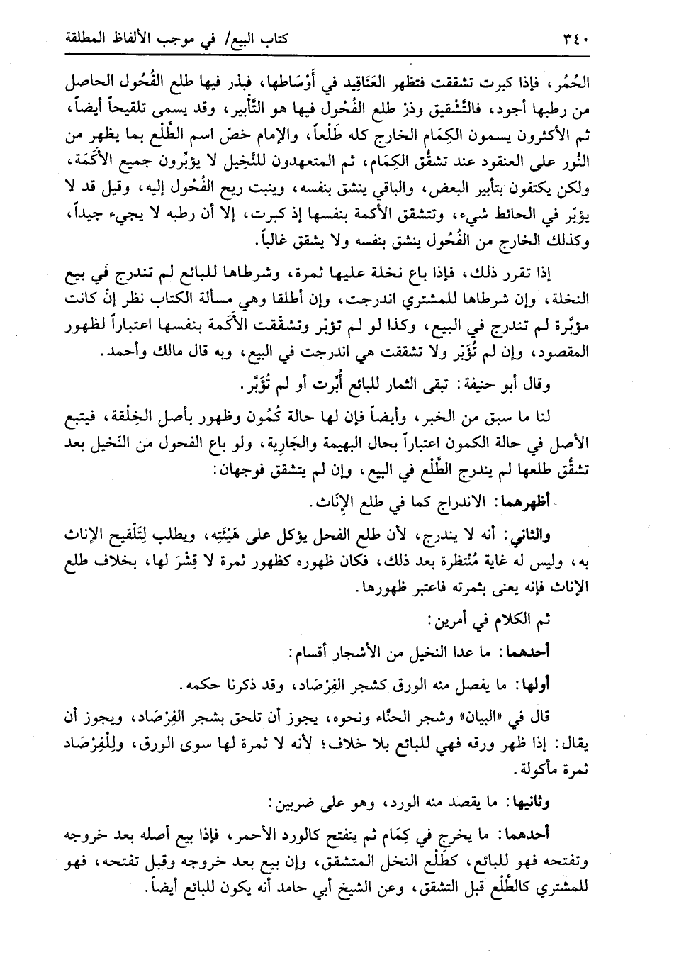 أحدهما: ما عدا النخيل من الأشجار أقسام: