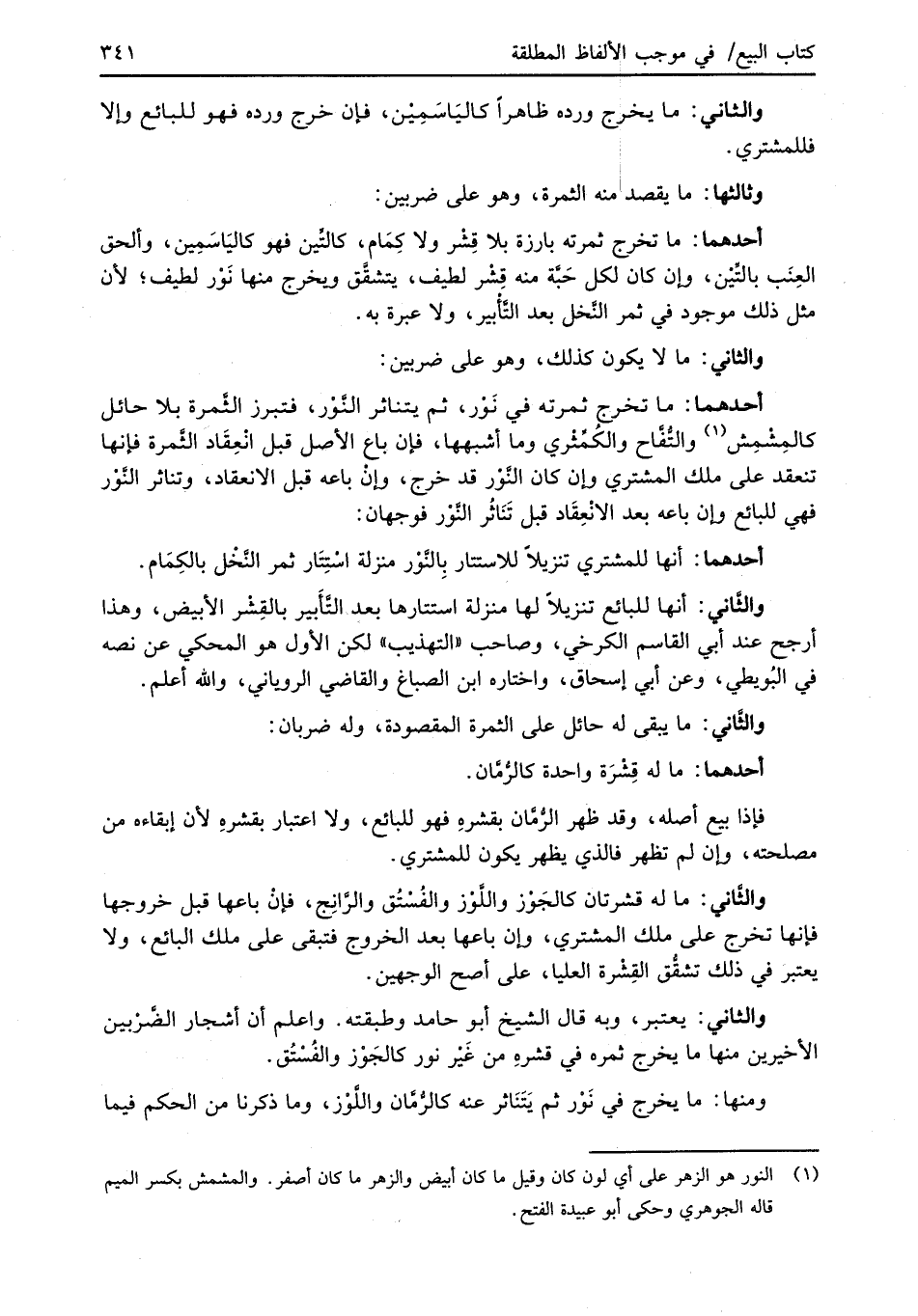 (¬1) النور هو الزهر على أي لون كان وقيل ما كان أبيض والزهر ما كان أصفر. والمشمش بكسر الميم قاله الجوهري وحكى أبو عبيدة الفتح.