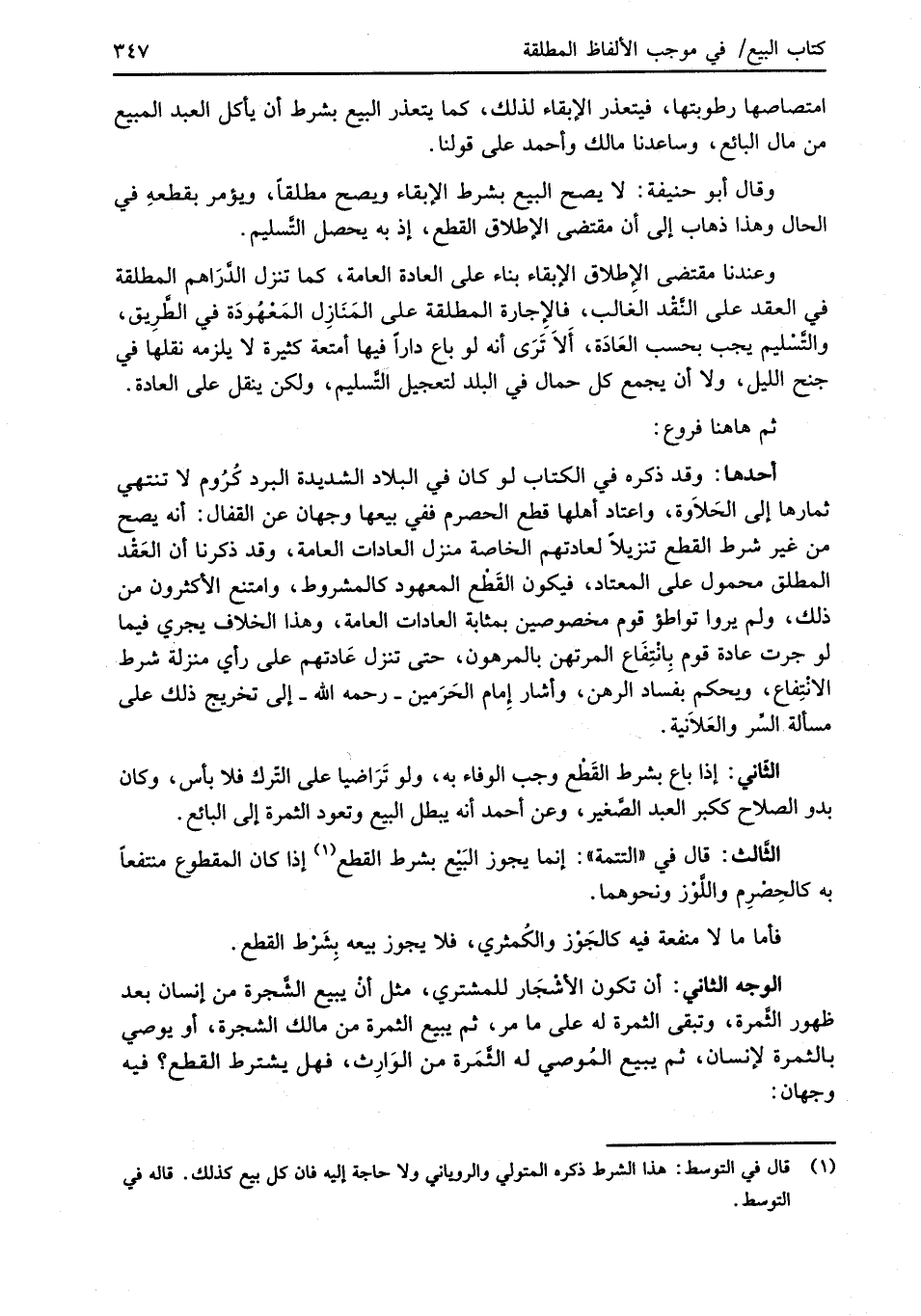 الثّاني: إذا باع بشرط القَطْع وجب الوفاء به، ولو تَرَاضيا على التّرك فلا بأس، وكان بدو الصلاح ككبر العبد الصَّغير، وعن أحمد أنه يبطل البيع وتعود الثمرة إلى البائع.