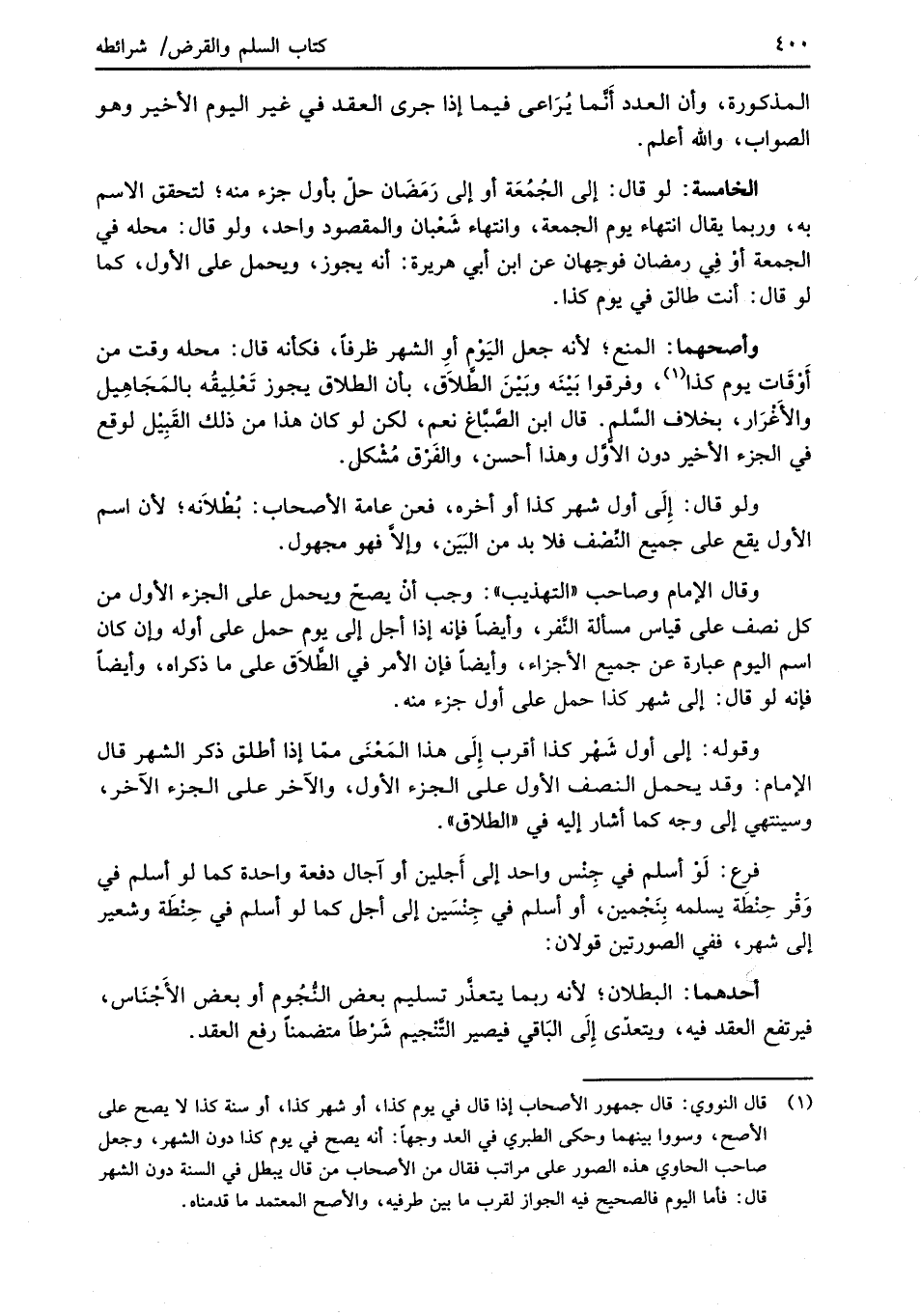 (¬1) قال النووي: قال جمهور الأصحاب إذا قال في يوم كذا، أو شهر كذا، أو سنة كذا لا يصح على الأصح، وسووا بينهما وحكى الطبري في العد وجهاً: أنه يصح في يوم كذا دون الشهر، وجعل صاحب الحاوي هذه الصور على مراتب فقال من الأصحاب من قال يبطل في السنة دون الشهر قال: فأما اليوم فالصحيح فيه الجواز لقرب ما بين طرفيه، والأصح المعتمد ما قدمناه.