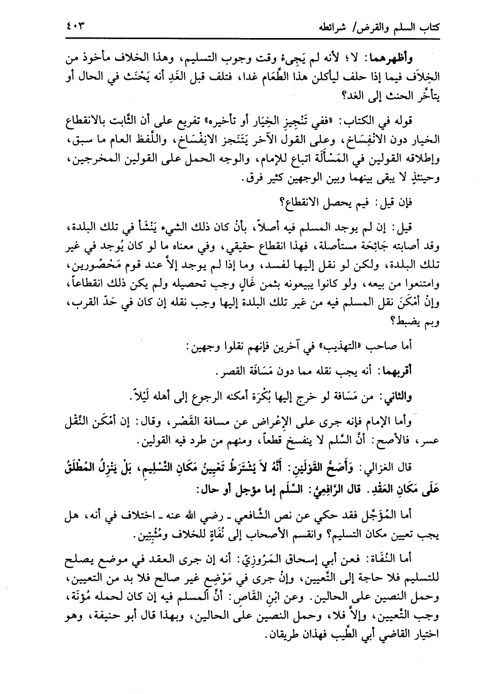قال الرَّافِعِيُّ: السَّلَم إما مؤجل أو حال:
