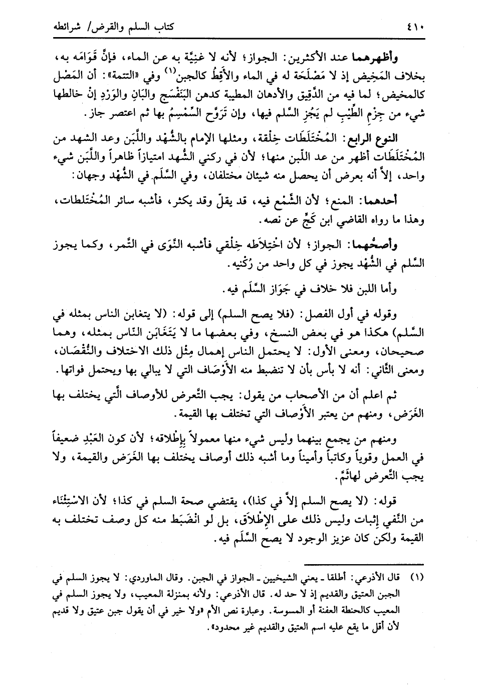 (¬1) قال الأذرعي: أطلقا -يعني الشيخيين- الجواز في الجبن. وقال الماوردي: لا يجوز السلم في الجبن العتيق والقديم إذ لا حد له. قال الأذرعي: ولأنه بمنزلة المعيب، ولا يجوز السلم في المعيب كالحنطة العفنة أو المسوسة. وعبارة نص الأم "ولا خير في أن يقول جبن عتيق ولا قديم لأن أقل ما يقع عليه اسم العتيق والقديم غير محدود".