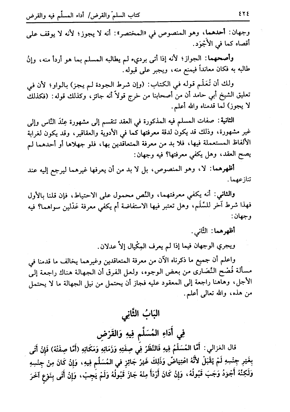 والثاني: أنه يكفي معرفتهما، والنَّص محمول على الاحتياط، فإن قلنا بالأول فهذا شرط آخر للسَّلَم، وهل تعتبر فيها الاستفاضة أم يكفي معرفة عَدْلين سواهما؟ فيه وجهان: