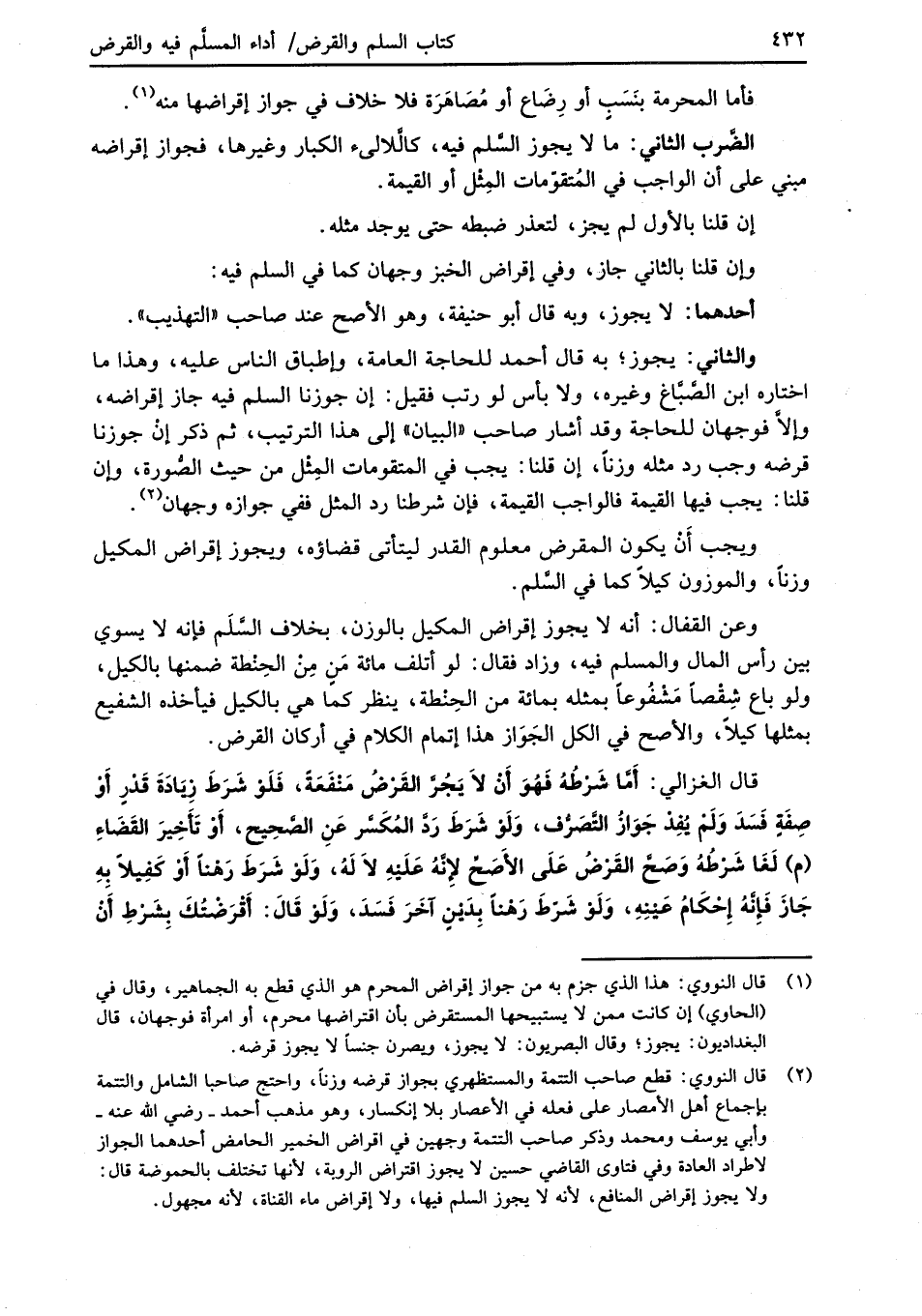 (¬1) قال النووي: هذا الذي جزم به من جواز إقراض المحرم هو الذي قطع به الجماهير، وقال في (الحاوي) إن كانت ممن لا يستبيحها المستقرض بأن اقتراضها محرم، أو امرأة فوجهان، قال البغداديون: يجوز؛ وقال البصريون: لا يجوز، ويصرن جنساً لا يجوز قرضه.
