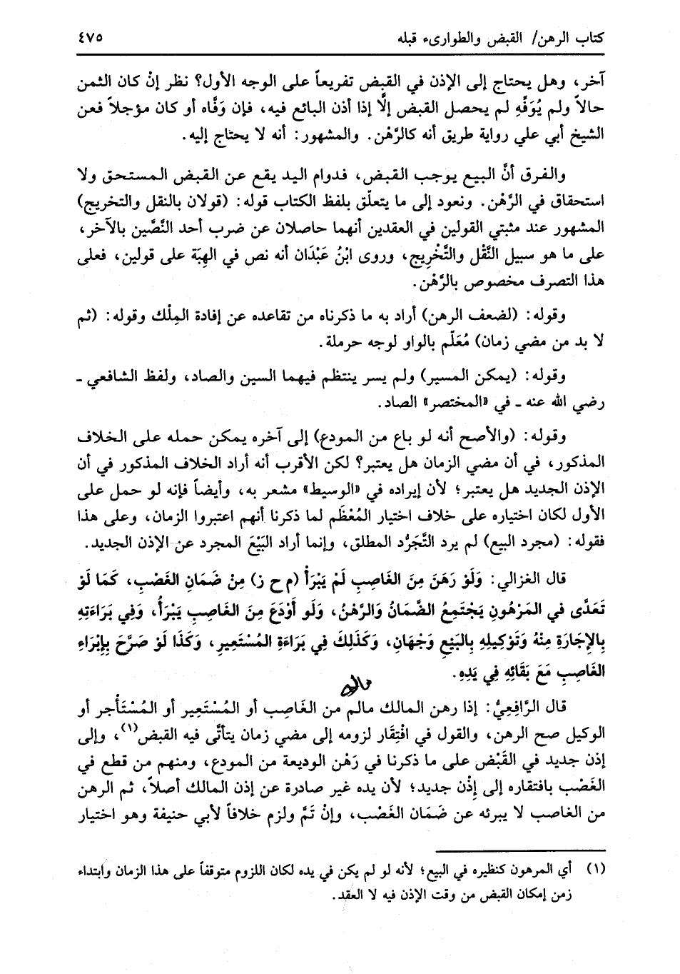 وقوله: (لضعف الرَّهْن) أراد به ما ذكرناه من تقاعده عن إفادة المِلْك وقوله: (ثم لا بد من مضي زمان) مُعَلّم بالواو لوجه حرملة.