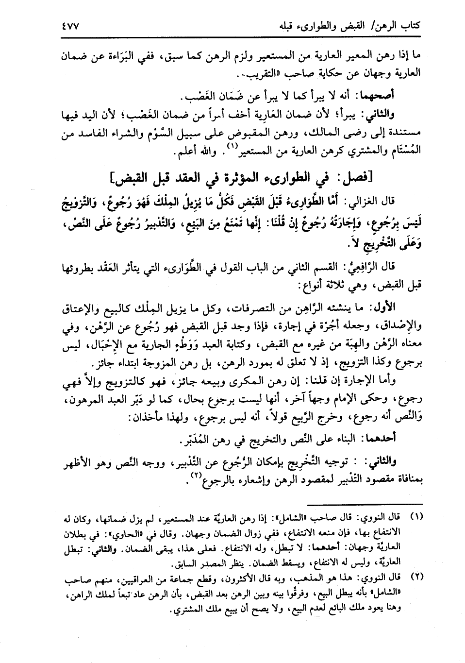 قال الرَّافِعِيُّ: القسم الثاني من الباب القول في الطَّوَارئ التي يتأثر العَقْد بطروئها قبل القبض، وهي ثلاثة أنواع:
