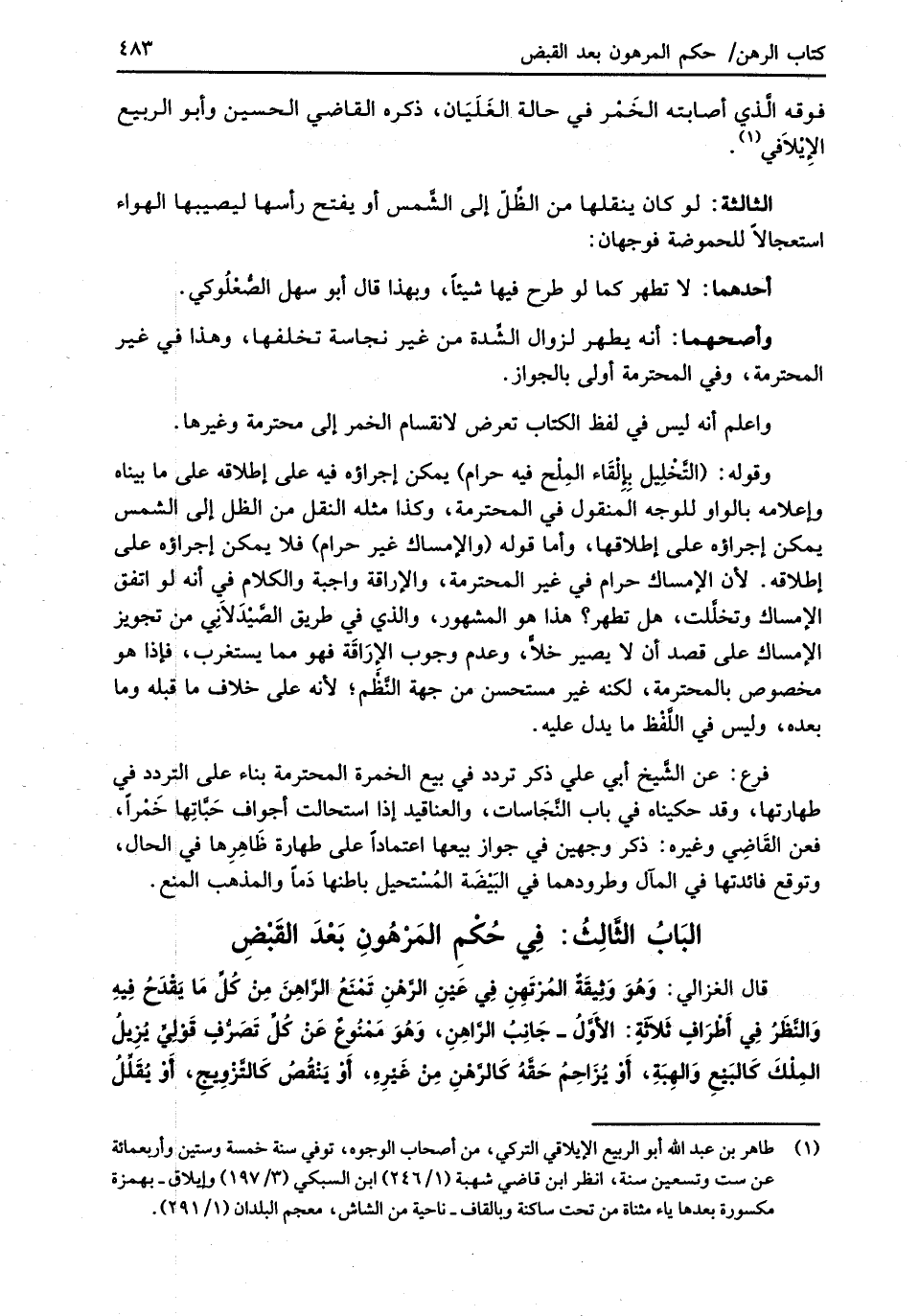 البَابُ الثَّالِثُ: فِي حُكْمِ المَرْهُونِ بَعْدَ القَبْضِ