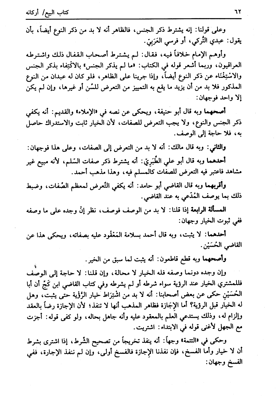 أصحهما وبه قال أبو حنيفة، ويحكى عن نصه في "الإملاء" والقديم: أنه يكفي ذكر الجنس والنوع، ولا يجب التعرض للصفات، لأن الخيار ثابت والاستدراك حاصل به، فلا حاجة إلى الوصف.