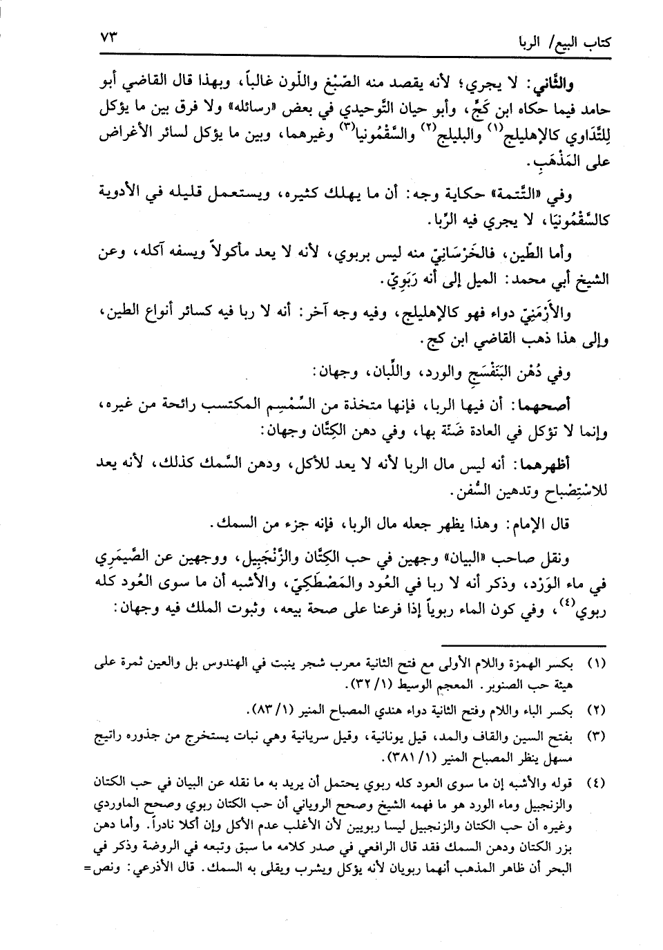 ونقل صاحب "البيان" وجهين في حب الكِتَّان والزَّنْجَبيل، ووجهين عن الصَّيمَرِي في ماء الوَرْد، وذكر أنه لا ربا في العُود والمَصْطَكِيّ، والأَشبه أن ما سوى العُود كله ربوي (¬4)، وفي كون الماء ربوياً إذا فرعنا على صحة بيعه، وثبوت الملك فيه وجهان: