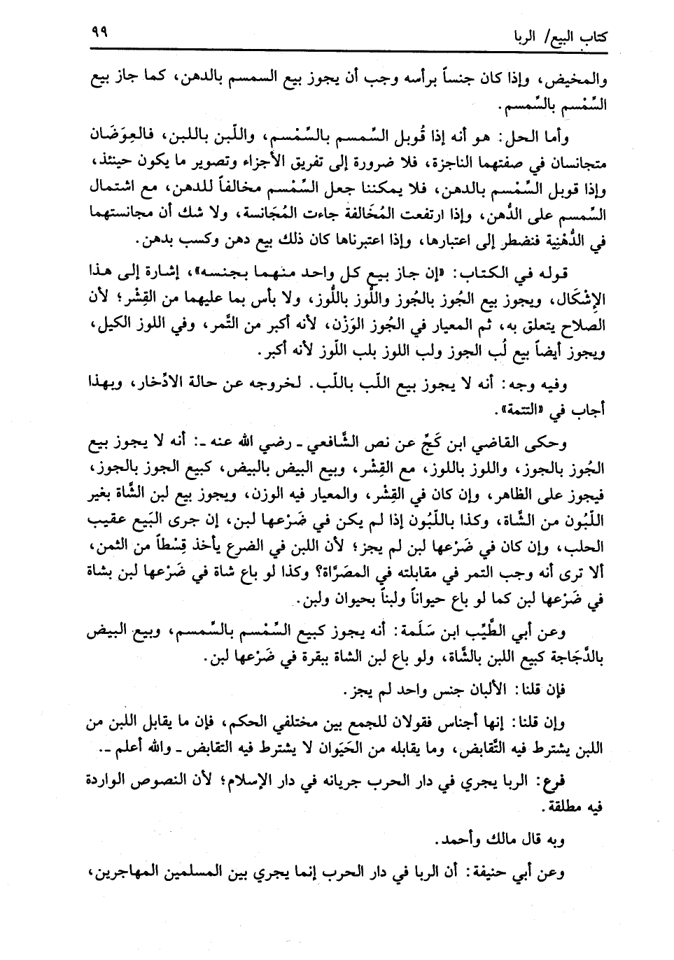 وأما الحل: هو أنه إذا قُوبل السِّمسم بالسِّمْسم، واللّبن باللبن، فالعِوَضَان متجانسان في صفتهما الناجزة، فلا ضرورة إلى تفريق الأجزاء وتصوير ما يكون حينئذ، وإذا قوبل السِّمْسم بالدهن، فلا يمكننا جعل السِّمْسم مخالفاً للدهن، مع اشتمال السِّمسم على الدُّهن، وإذا ارتفعت المُخَالفة جاءت المُجَانسة، ولا شك أن مجانستهما في الدُّهْنِية فنضطر إلى اعتبارها، وإذا اعتبرناها كان ذلك بيع دهن وكسب بدهن.