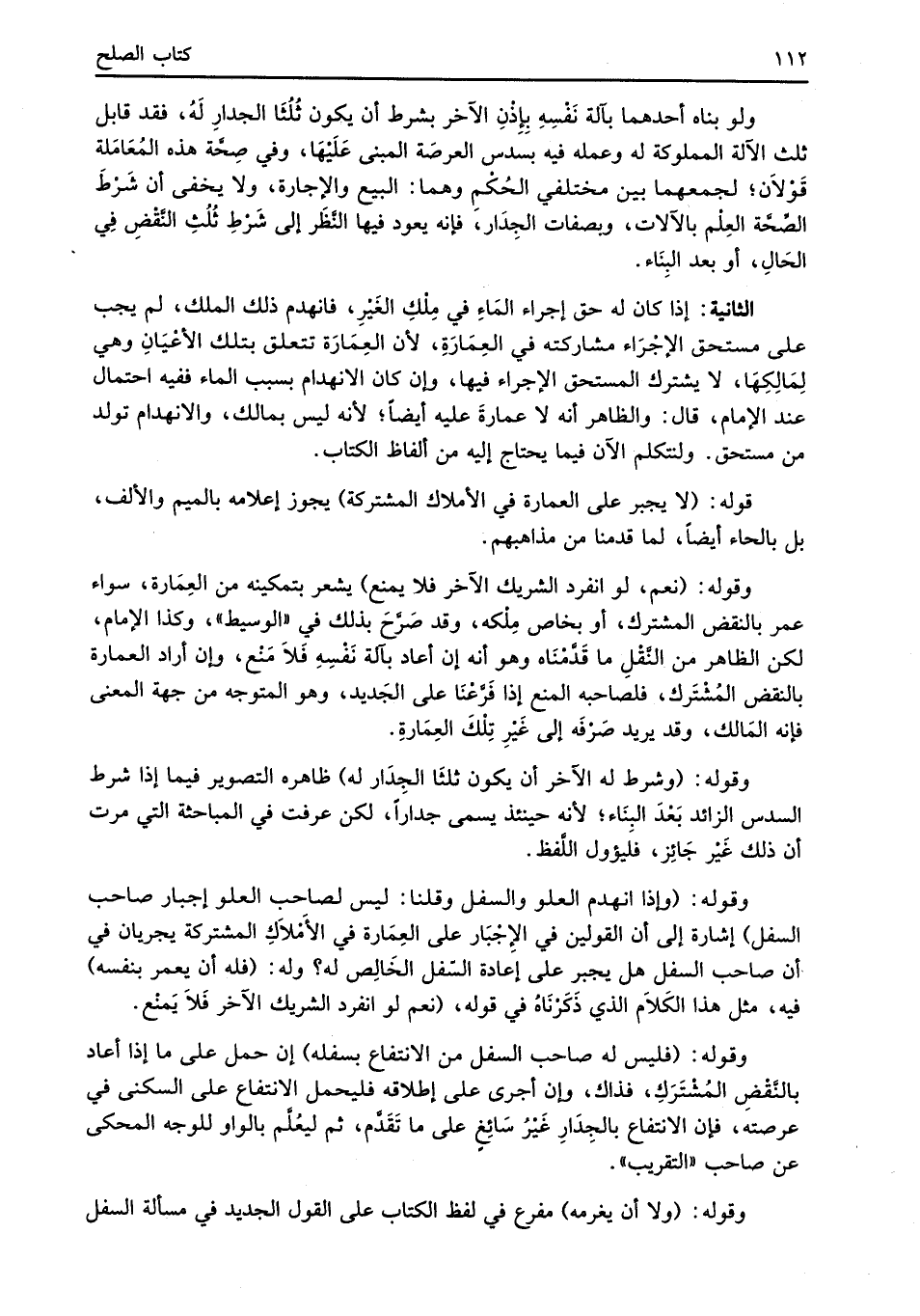قوله: (لا يجبر على العمارة في الأملاك المشتركة) يجوز إعلامه بالميم والألف، بل بالحاء أيضًا، لما قدمنا من مذاهبهم.