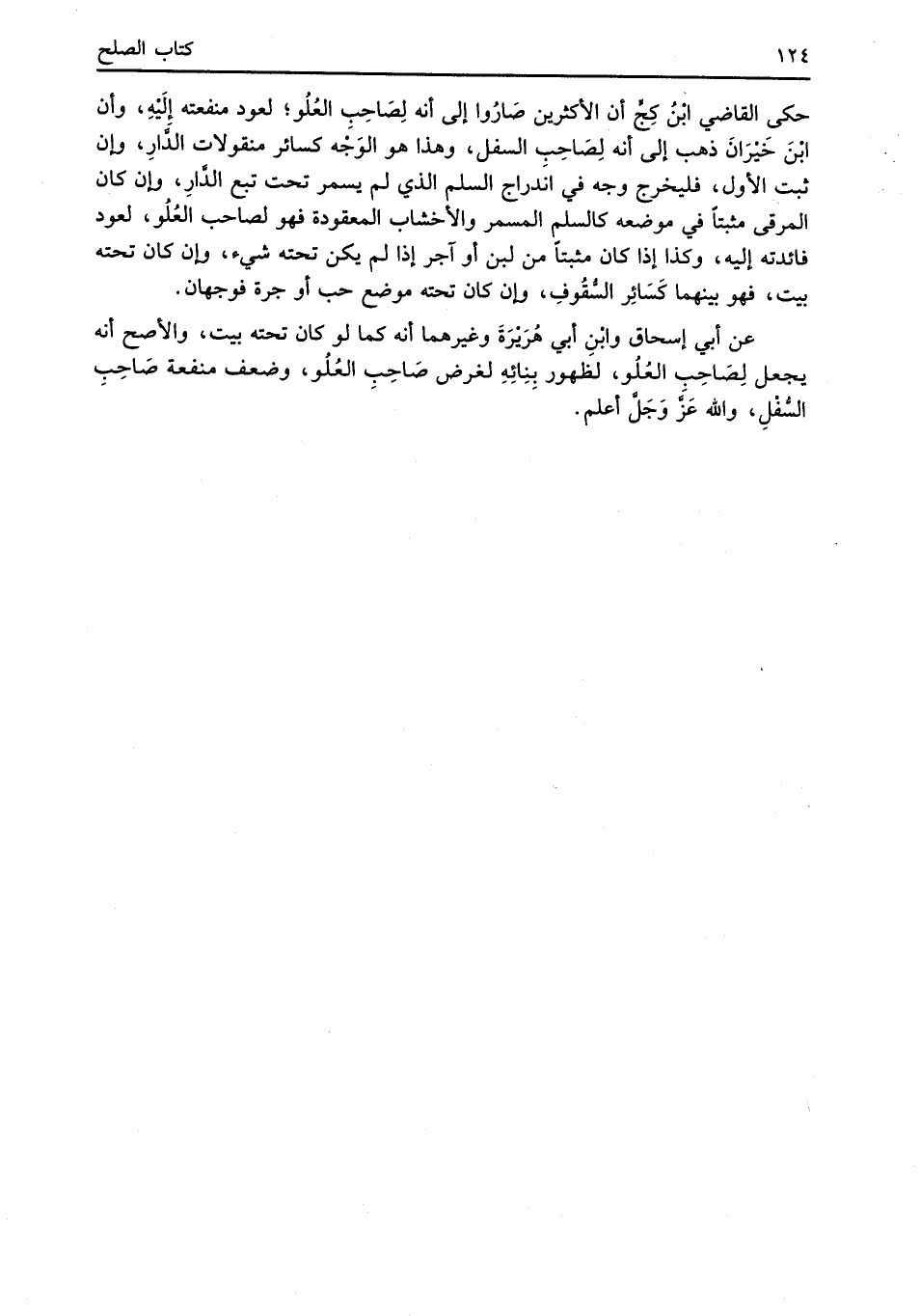 عن أبي إسحاق وابْنِ أبي هُرَيْرَةَ وغيرهما أنه كما لو كان تحته بيت، والأصح أنه يجعل لِصَاحِب العُلُو، لظهور بِنِائِهِ لغرض صَاحِبِ العُلُو، وضعف منفعة صَاحِبِ السُّفْلِ، والله عَزَّ وَجَلَّ أعلم.