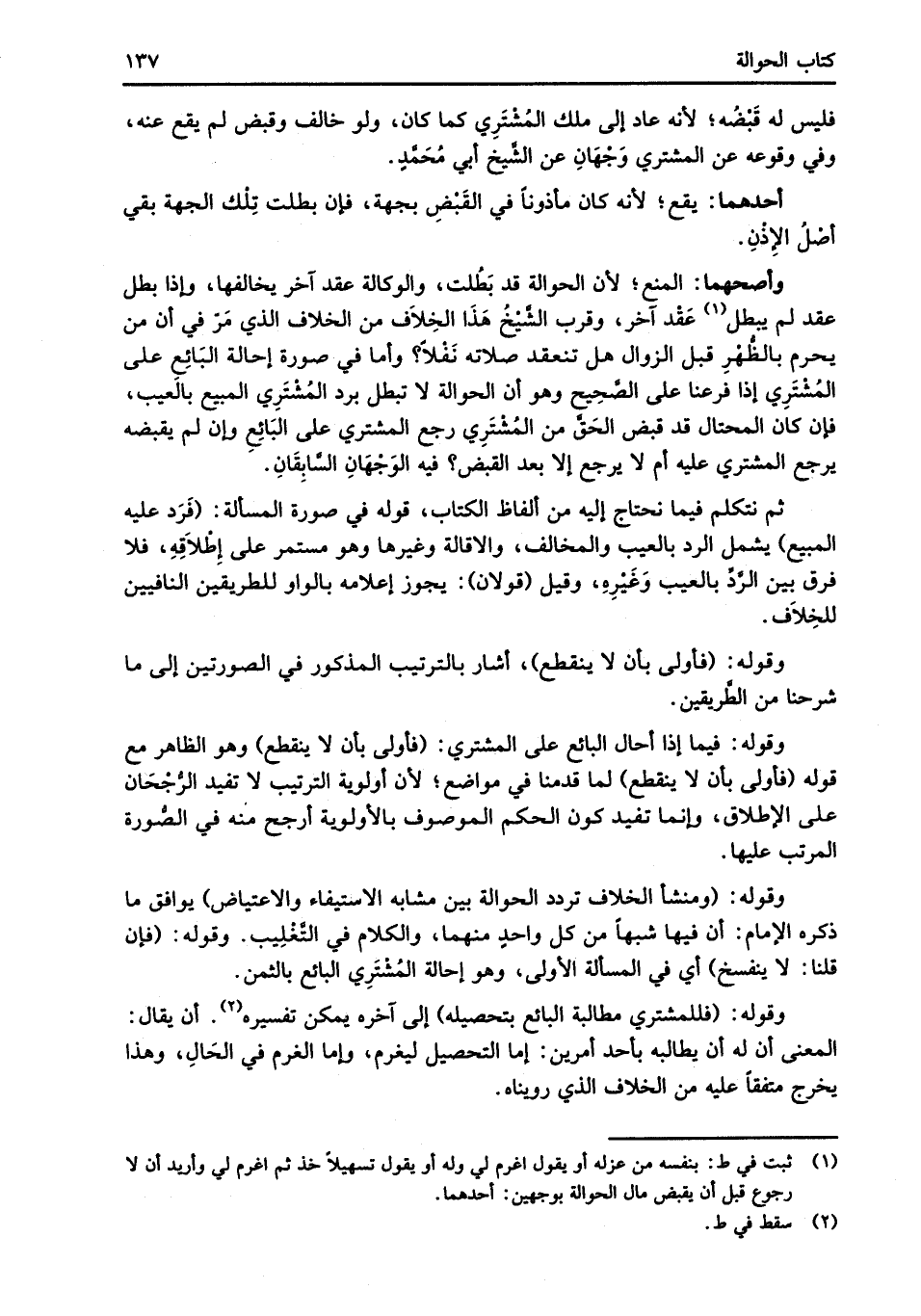 (¬1) ثبت في ط: بنفسه من عزله أو يقول اغرم لي وله أو يقول تسهيلاً خذ ثم اغرم لي وأريد أن لا رجوع قبل أن يقبض مال الحوالة بوجهين: أحدهما.