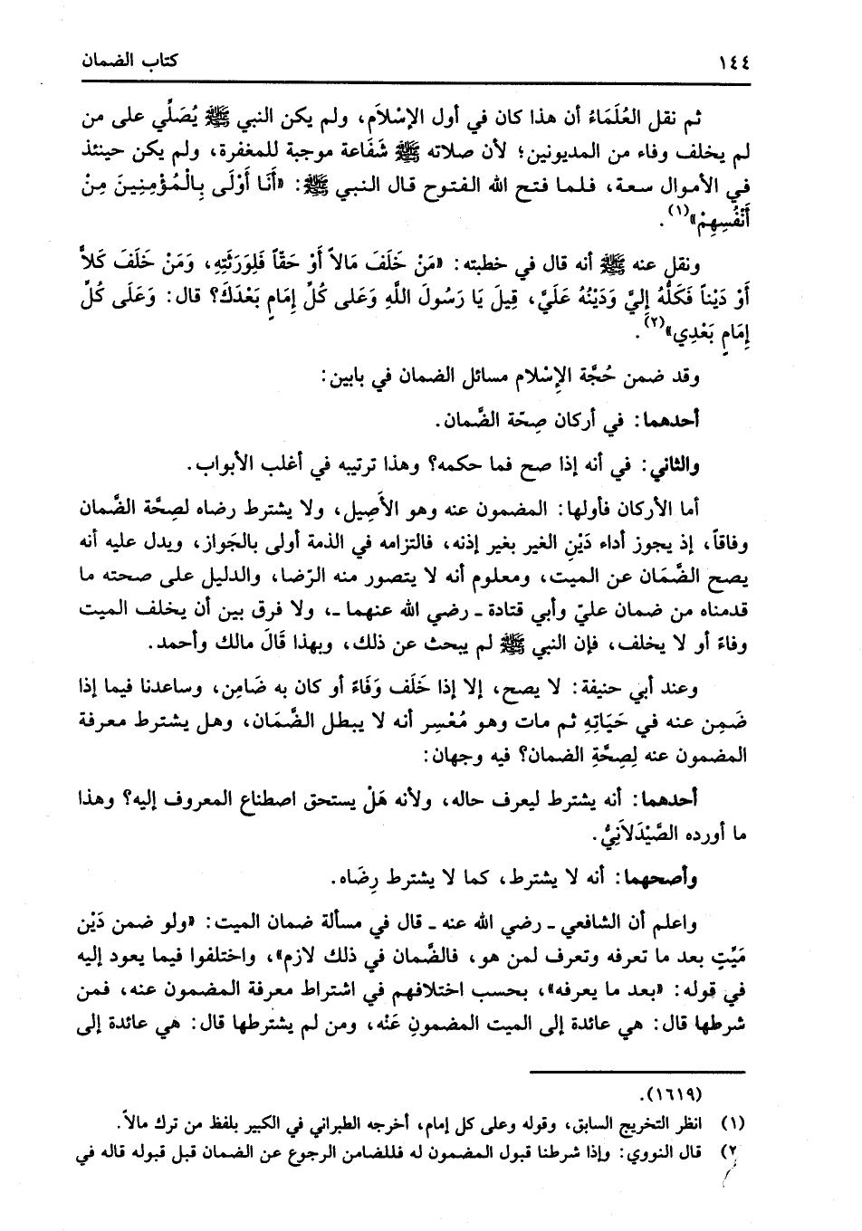 وقد ضمن حُجَّة الإِسْلام مسائل الضمان في بابين:
