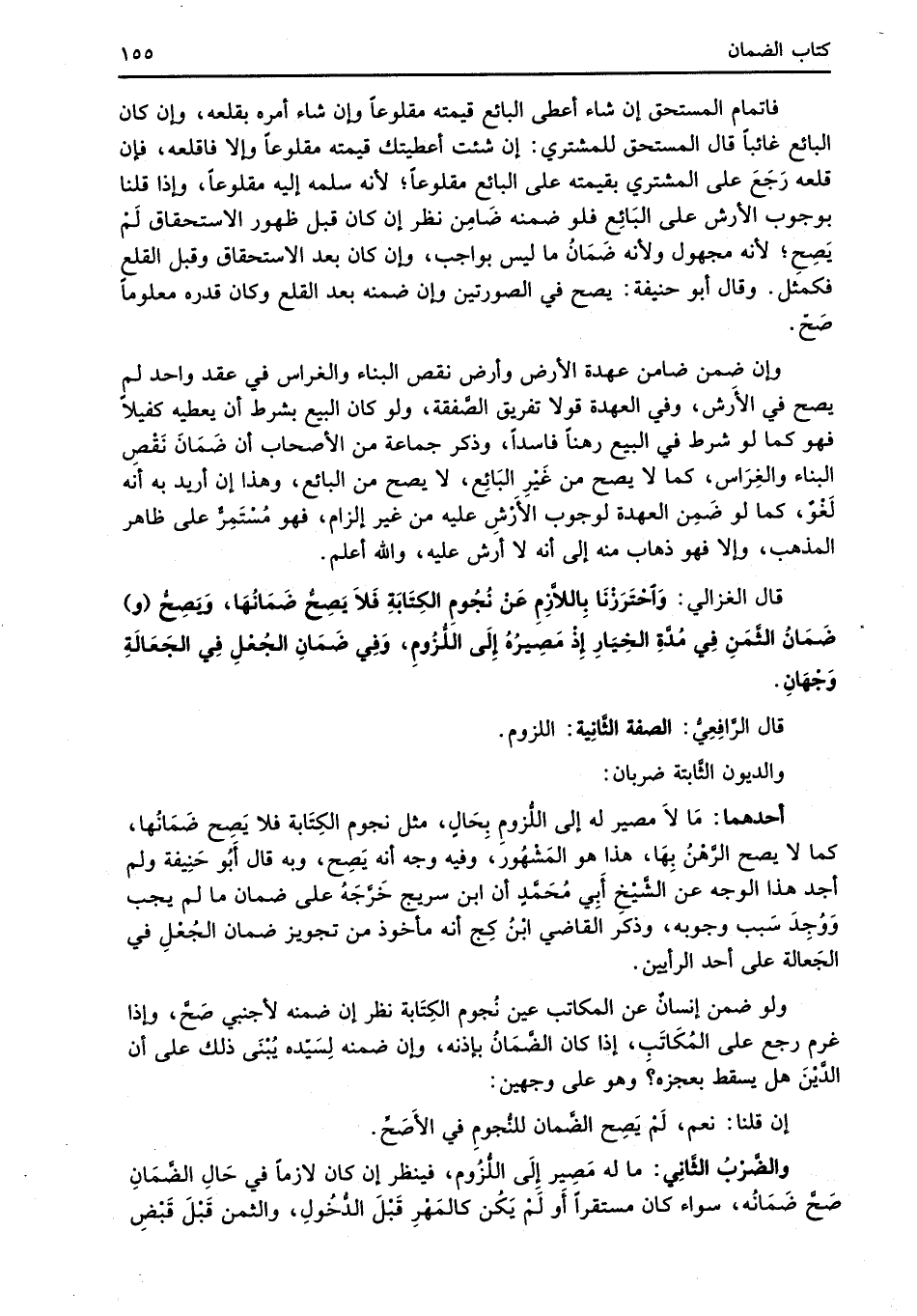 قال الرَّافِعِىُّ: الصفة الثَّانِية: اللزوم.