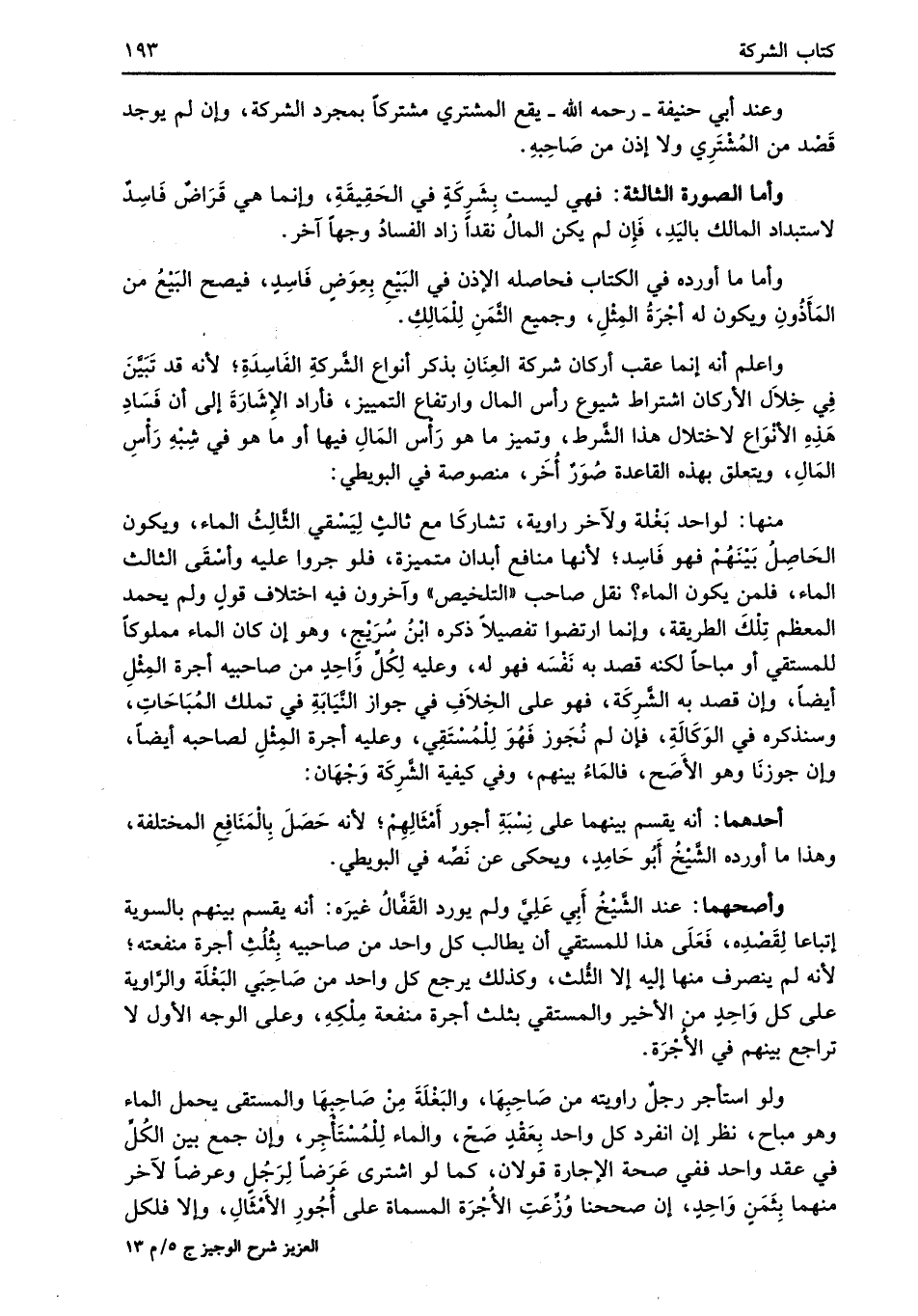 واعلم أنه إنما عقب أركان شركة العِنَانِ بذكر أنواع الشَّركةِ الفَاسِدَةِ؛ لأنه قد تَبَيَّنَ في خِلاَل الأركان اشتراط شيوع رأس المال وارتفاع التمييز، فأراد الإِشَارَةَ إلى أن فَسَادِ هَذِهِ الأنْوَاع لاختلال هذا الشَّرط، وتميز ما هو رَأس المَالِ فيها أو ما هو في شِبْهِ رَأْسِ المَالِ، ويتعلق بهذه القاعدة صُوَرٌ أُخَر، منصوصة في البويطي: