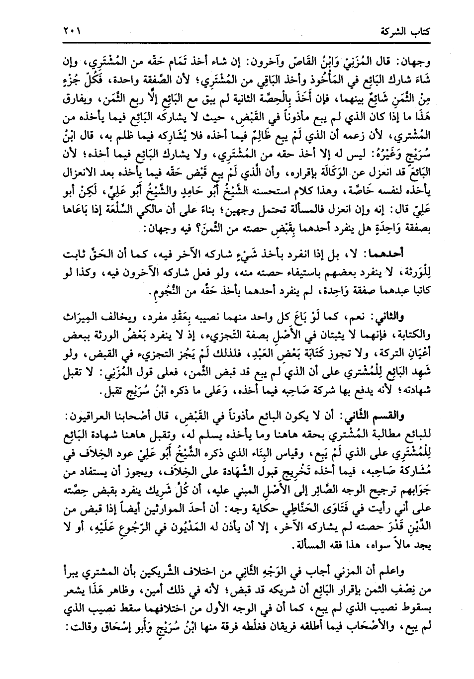 واعلم أن المزني أجاب في الوَجْهِ الثَّانِي من اختلاف الشَّريكين بان المشتري يبرأ من نِصْفِ الثمن بإقرار البَائِع أن شريكه قد قبض؛ لأنه في ذلك أمين، وظاهر هَذَا يشعر بسقوط نصيب الذي لم يبع، كما أن في الوجه الأول من اختلافهما سقط نصيب الذي لم يبع، والأصْحَاب فيما أطلقه فريقان فغلّطه فرقة منها ابْنُ سُرَيْجٍ وَأَبو إسْحَاق وقالت: