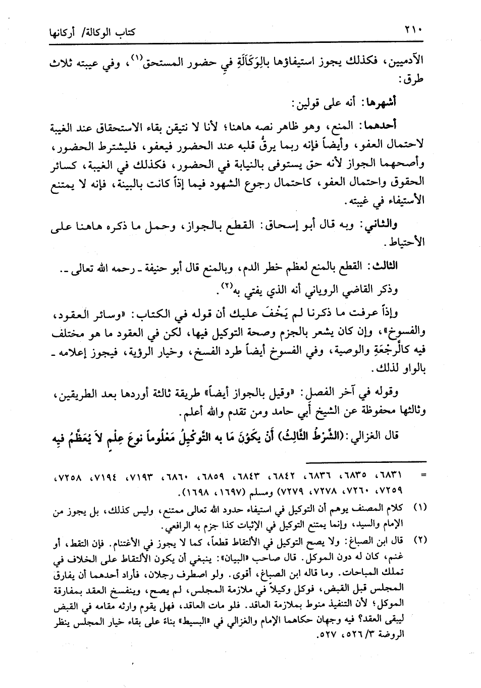 قال الغزالي: (الشَّرْطُ الثَّالِثُ) أَنْ يكَوُنَ مَا به التَّوكْيِلُ مَعْلُوماً نوعَ عِلْمٍ لاَ يُعَظَّمُ فيِه