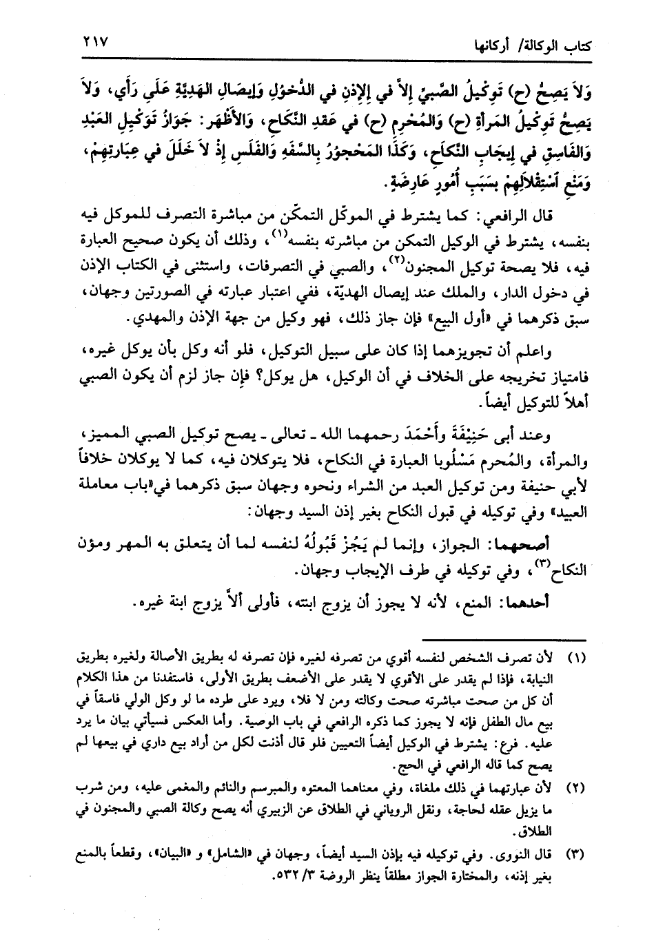 (¬3) قال النووى. وفي توكيله فيه بإذن السيد أيضاً، وجهان في "الشامل" و"البيان"، وقطعاً بالمنع بغير إذنه، والمختارة الجواز مطلقاً ينظر الروضة 3/ 532.
