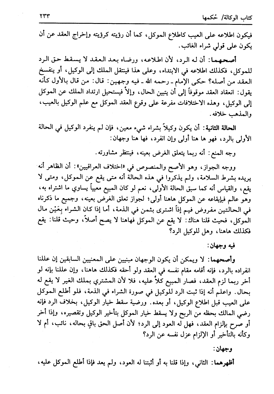 الحالة الثانية: أن يكون وكيلاً بشراء شيء معين، فإن لم ينفرد الوكيل في الحالة الأولى بالرد، فهو هاهنا أولى وإن انفرد، فهاهنا وجهان: