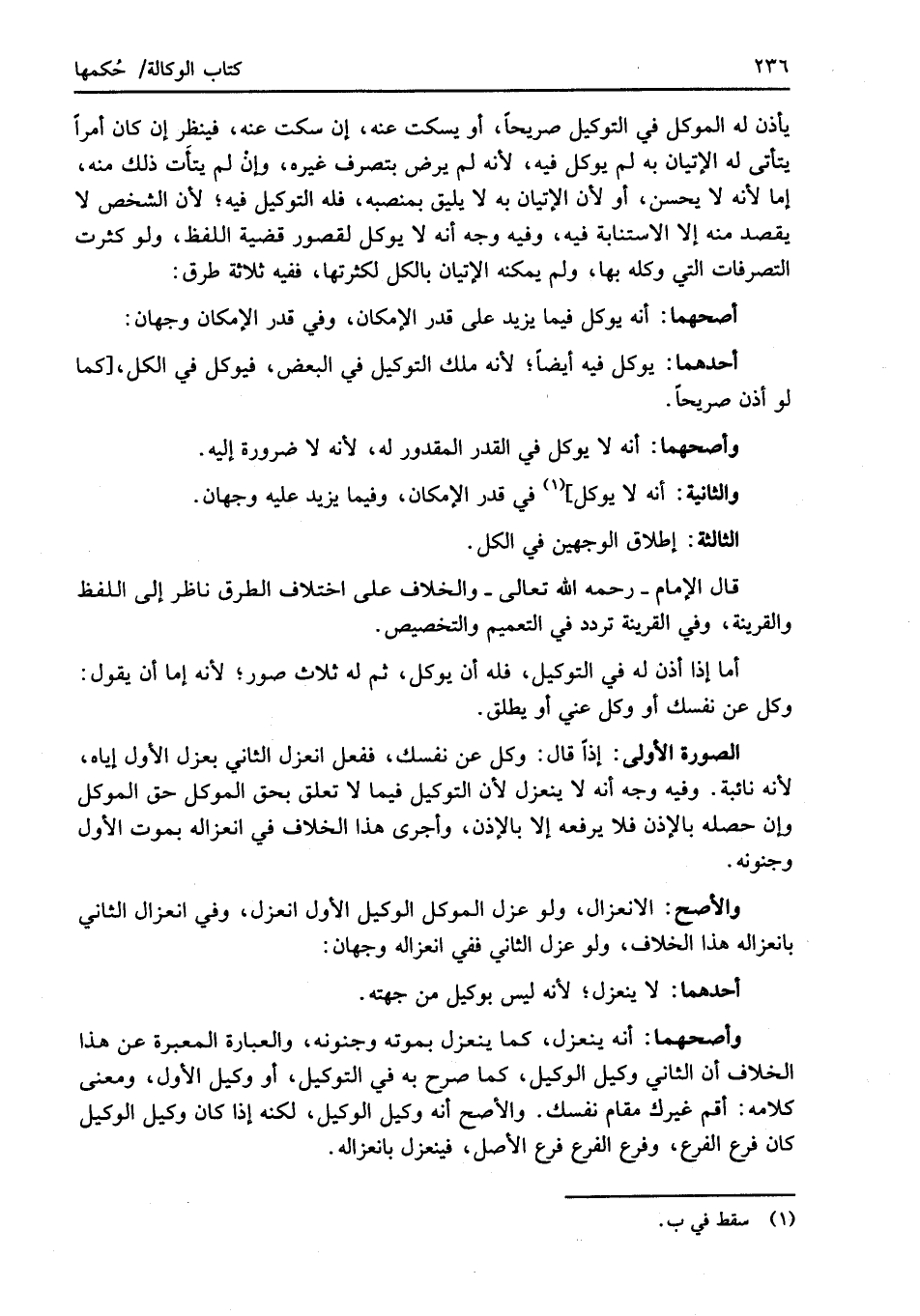وأصحهما: أنه لا يوكل في القدر المقدور له, لأنه لا ضرورة إليه.