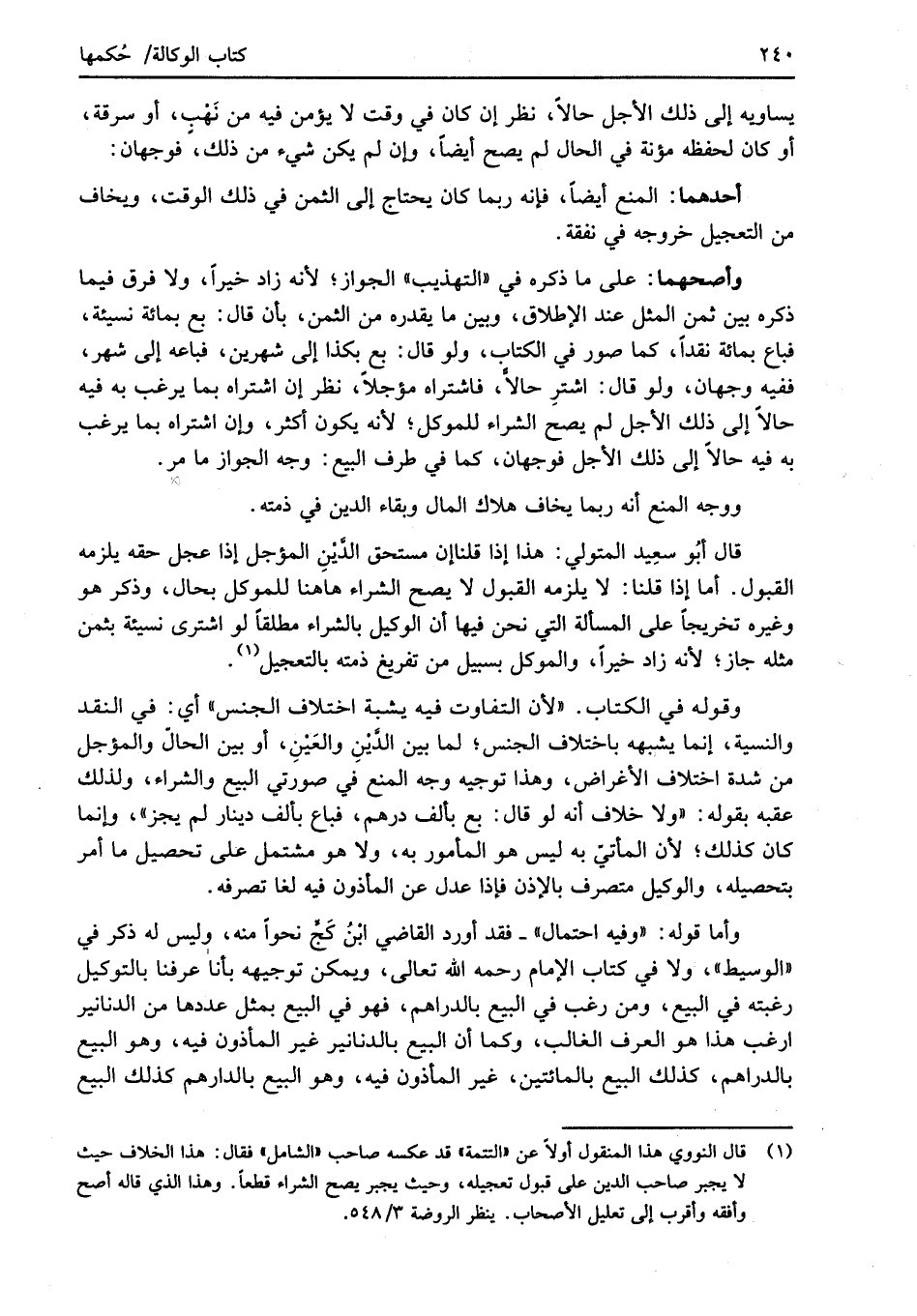(¬1) قال النووي هذا المنقول أولاً عن "التتمة" قد عكسه صاحب "الشامل" فقال: هذا الخلاف حيث لا يجبر صاحب الدين على قبول تعجيله، وحيث يجبر يصح الشراء قطعاً. وهذا الذي قاله أصح وأفقه وأقرب إلى تعليل الأصحاب. ينظر الروضة 3/ 548.