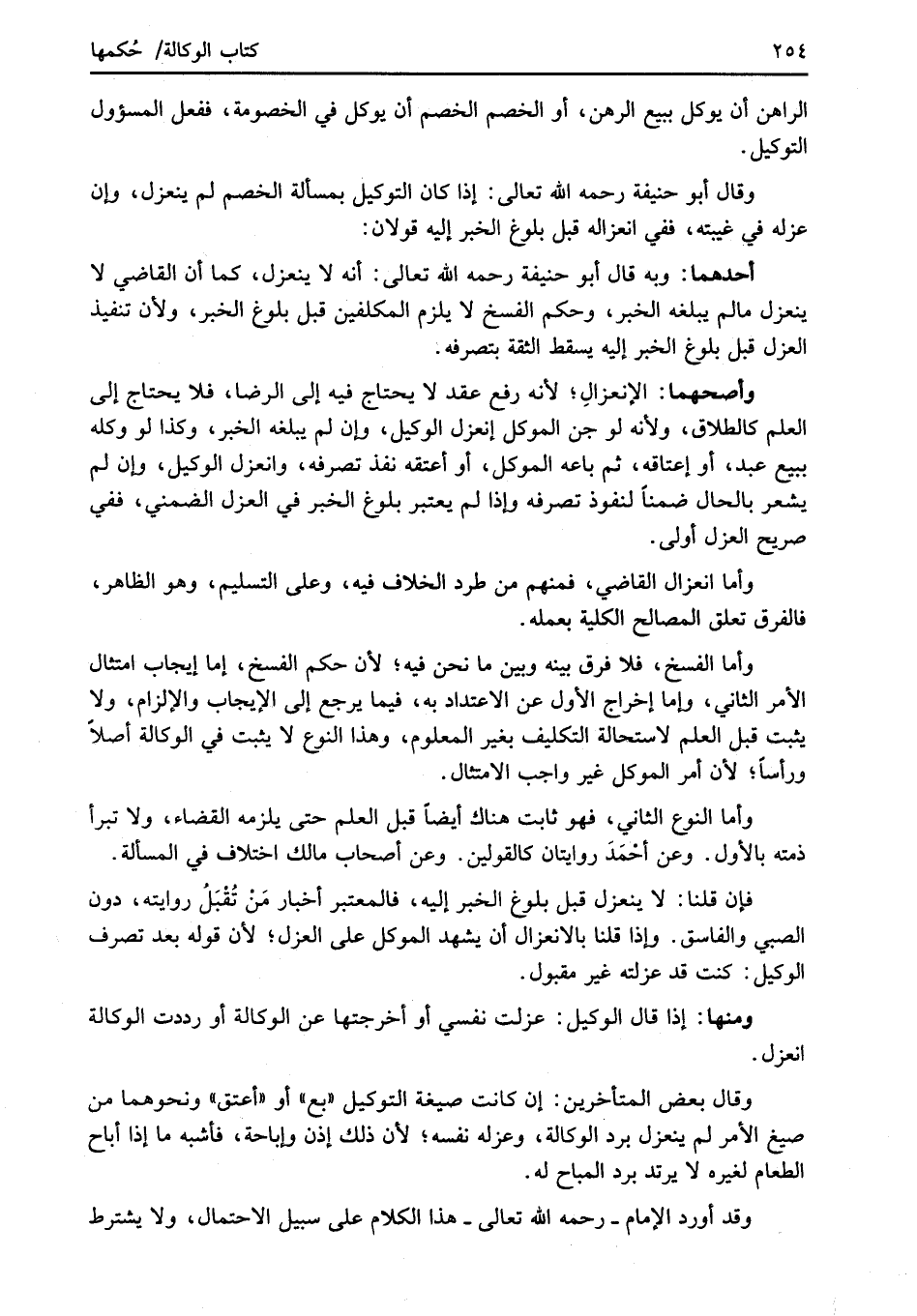 وأما الفسخ، فلا فرق بينه وبين ما نحن فيه؛ لأن حكم الفسخ، إما إيجاب امتثال الأمر الثاني، وإما إخراج الأول عن الاعتداد به، فيما يرجع إلى الإيجاب والإلزام، ولا يثبت قبل العلم لاستحالة التكليف بغير المعلوم، وهذا النوع لا يثبت في الوكالة أصلاً ورأساً؛ لأن أمر الموكل غير واجب الامتثال.