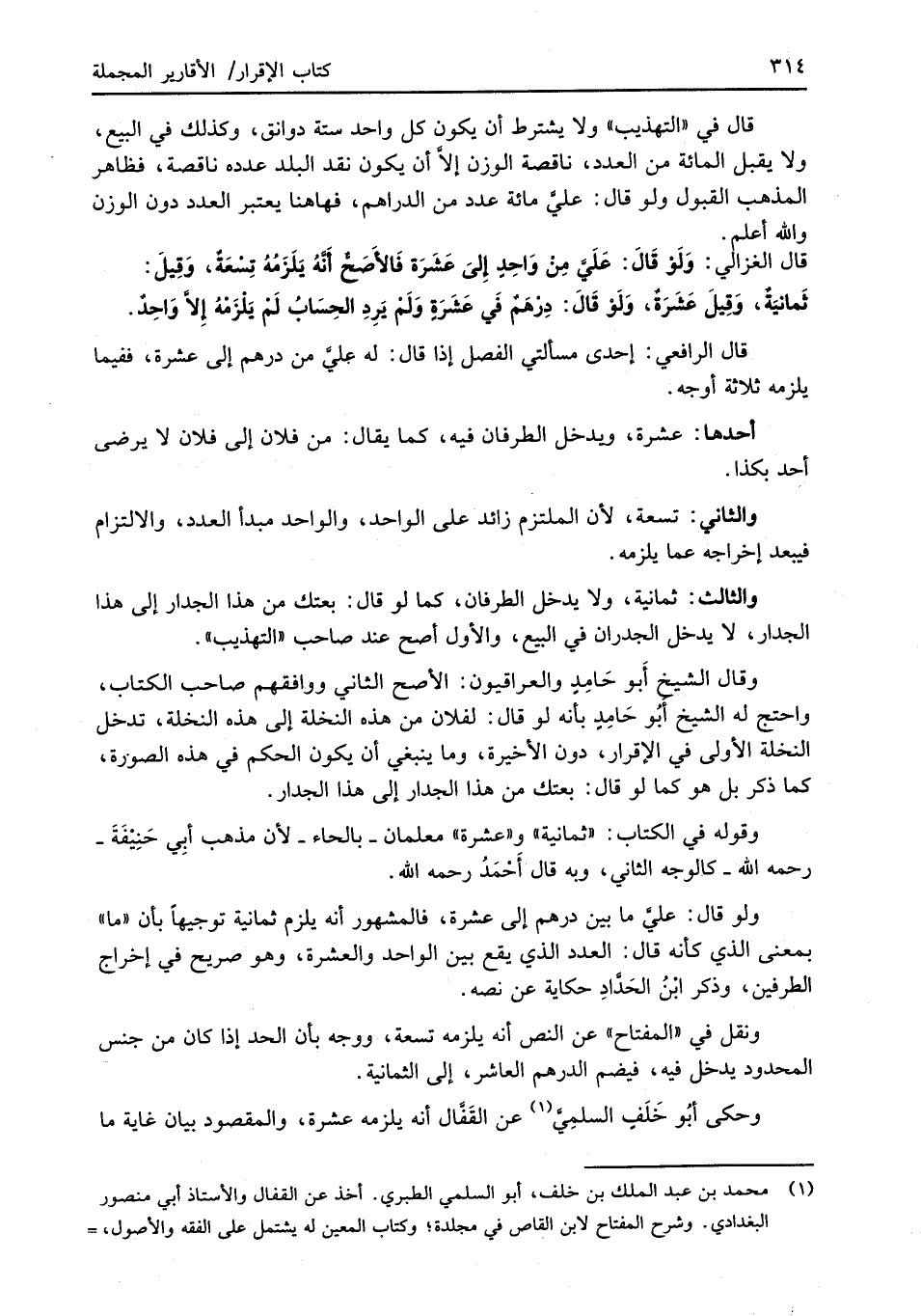 قال الغزالي: وَلَوْ قَالَ: عَلَيَّ مِنْ وَاحِدٍ إِلىَ عَشَرَة فَالأَصَحُّ أَنَّهُ يَلَزَمُهُ تِسْعَةٌ، وَقِيلَ: ثَمانيَةٌ، وَقِيلَ عَشَرَةٌ، وَلَوْ قَالَ: دِرْهَمٌ فَي عَشَرَةٍ وَلَمْ يَرِدِ الحِسَابُ لَمْ يَلْزَمْهُ إِلاَّ وَاحِدٌ.