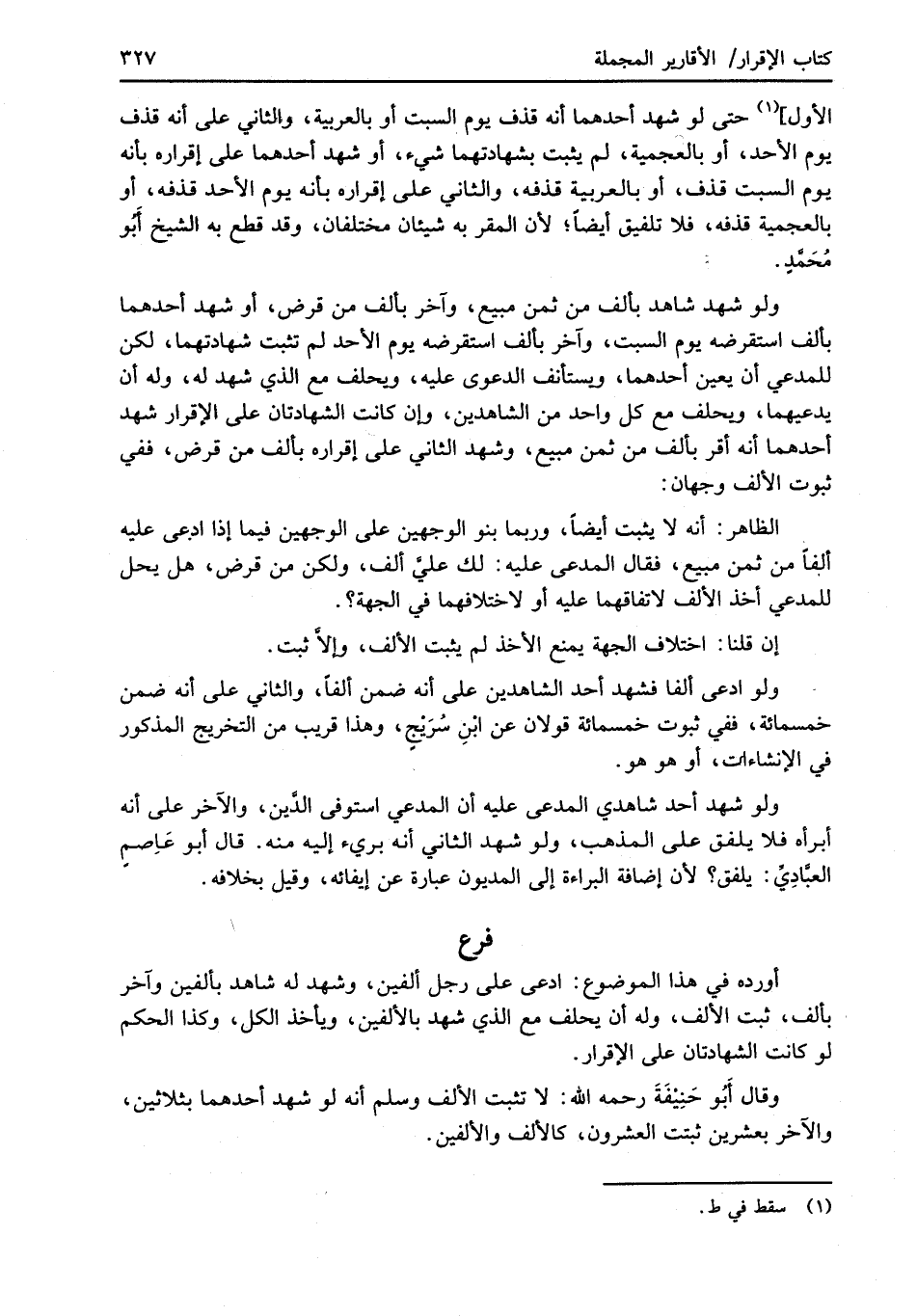 أورده في هذا الموضوع: ادعى على رجل ألفين، وشهد له شاهد بألفين وآخر بألف، ثبت الألف، وله أن يحلف مع الذي شهد بالألفين، ويأخذ الكل، وكذا الحكم لو كانت الشهادتان على الإقرار.