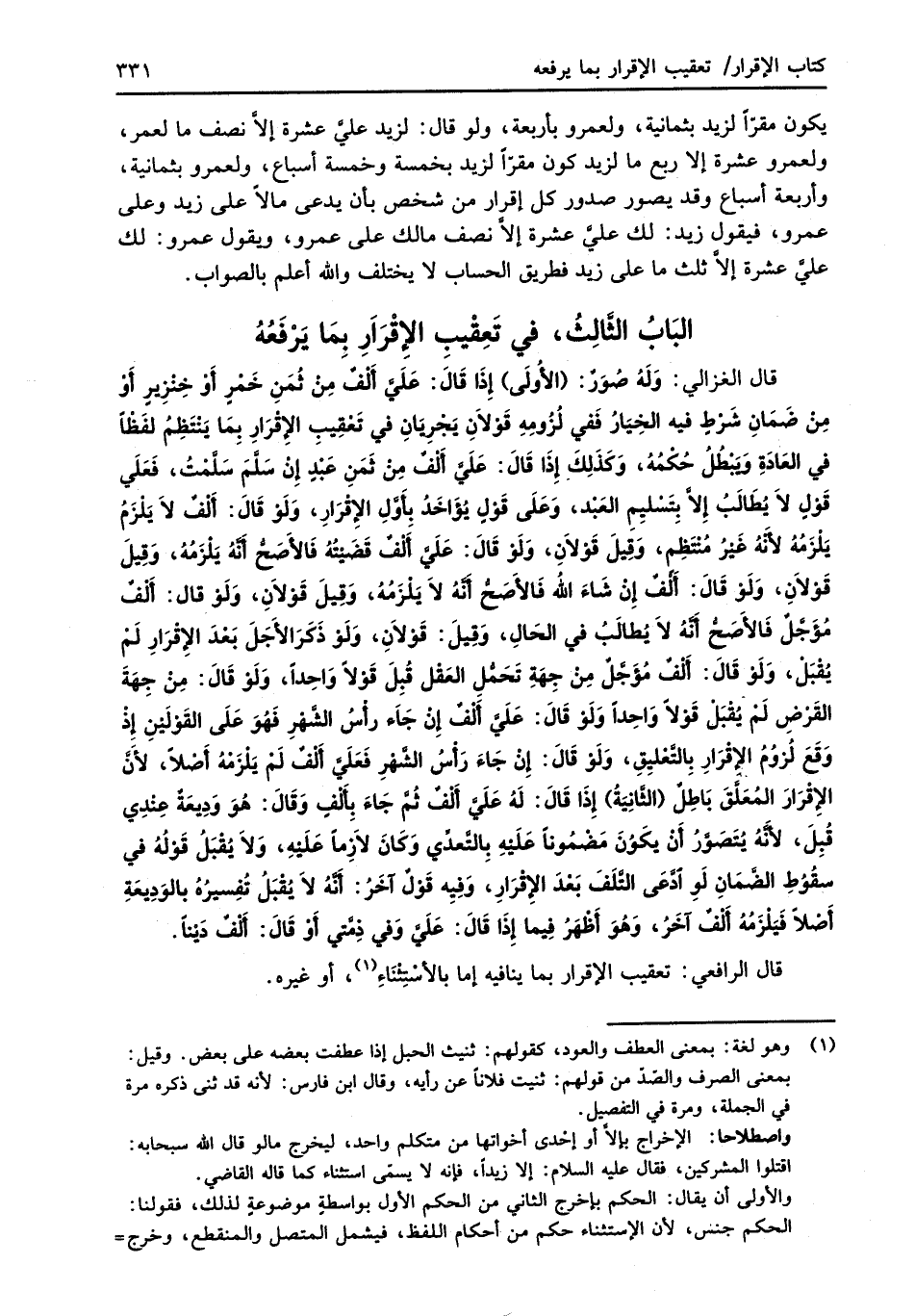 البَابُ الثَّالِثُ، في تَعِقْيبِ الإِقْرَارِ بِمَا يَرْفَعُهُ