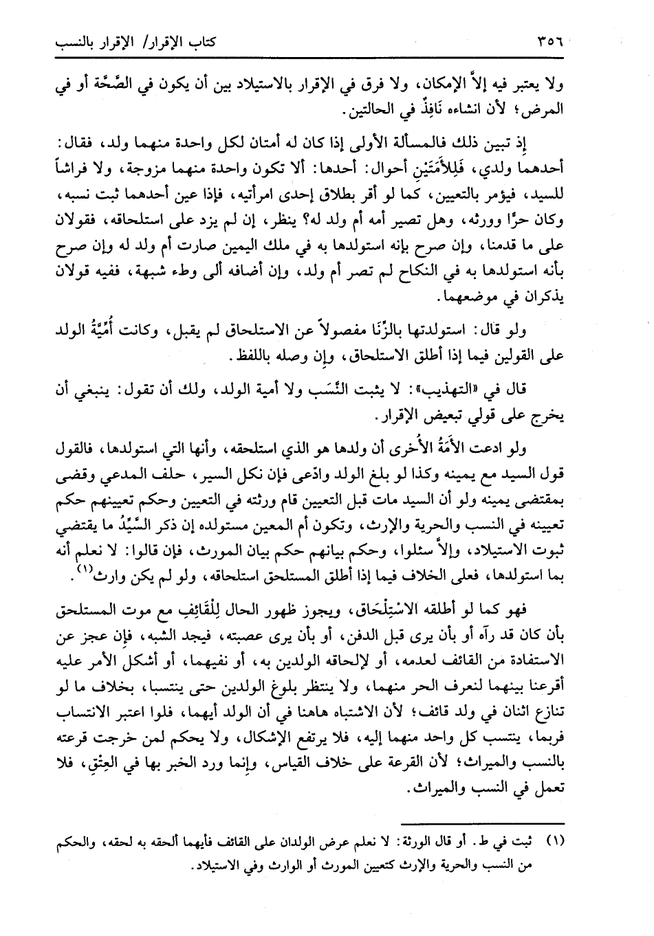 (¬1) ثبت في ط. أو قال الورثة: لا نعلم عرض الولدان على القائف فايهما ألحقه به لحقه، والحكم من النسب والحرية والإرث كتعيين المورث أو الوارث وفي الاستيلاد.
