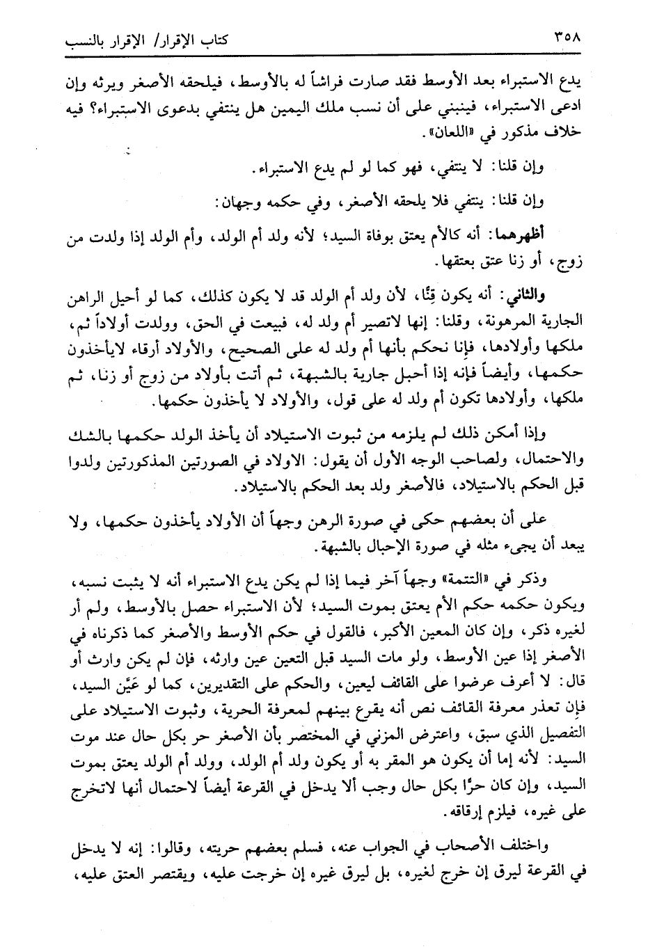 وإذا أمكن ذلك لم يلزمه من ثبوث الاستيلاد أن يأخذ الولد حكمها بالشك والاحتمال، ولصاحب الوجه الأول أن يقول: الاولاد في الصورتين المذكورتين ولدوا قبل الحكم بالاستيلاد، فالأصغر ولد بعد الحكم بالاستيلاد.