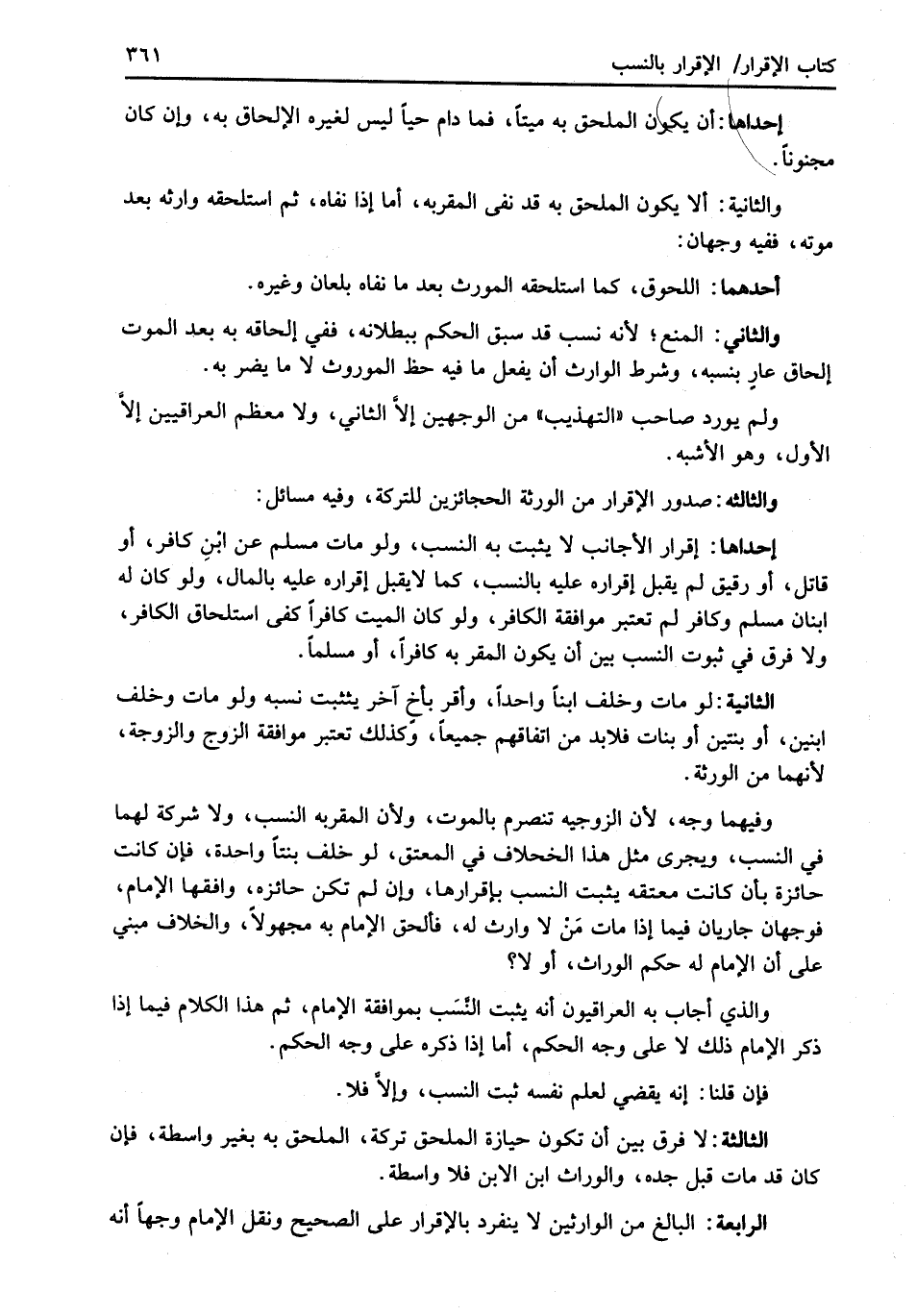 الرابعة: البالغ من الوارثين لا ينفرد بالاقرار على الصحيح ونقل الإمام وجهاً أنه
