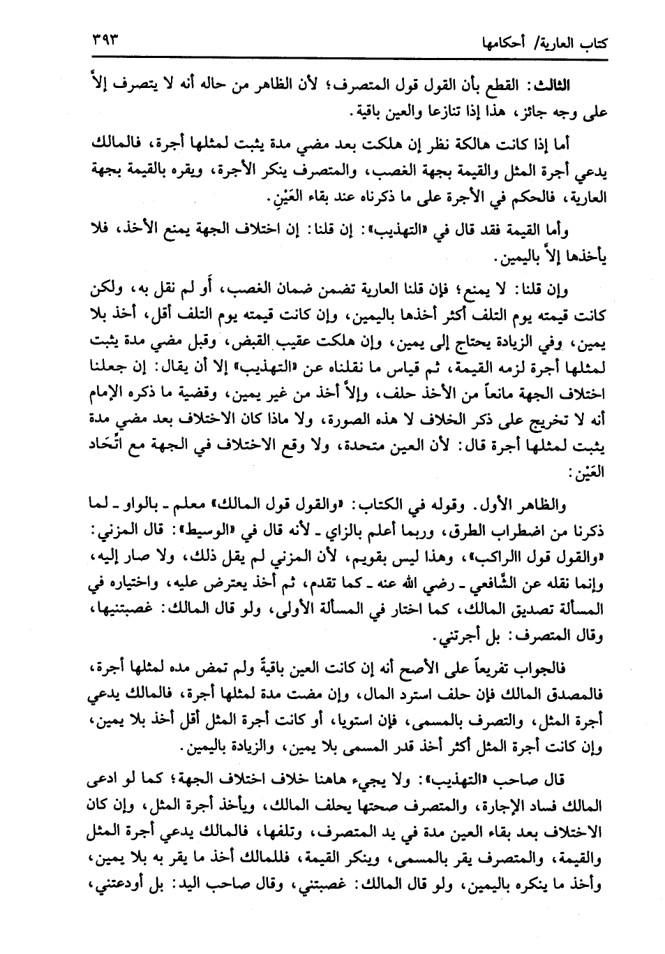 وإن قلنا: لا يمنع؛ فإن قلنا العارية تضمن ضمان الغصب، أَو لم نقل به، ولكن كانت قيمته يوم التلف أكثر أخذها باليمين، وإن كانت قيمته يوم التلف أقل، أخذ بلا يمين، وفي الزيادة يحتاج إلى يمين، وإن هلكت عقيب القبض، وقبل مضي مدة يثبت لمثلها أجرة لزمه القيمة، ثم قياس ما نقلناه عن "التهذيب" إلا أن يقال: إن جعلنا اختلاف الجهة مانعاً من الأخذ حلف، وإلاَّ أخذ من غير يمين، وقضية ما ذكره الإمام أنه لا تخريج على ذكر الخلاف لا هذه الصورة، ولا ماذا كان الاختلاف بعد مضي مدة يثبت لمثلها أجرة قال: لأن العين متحدة، ولا وقع الاختلاف في الجهة مع اتِّحَاد العَيْن:
