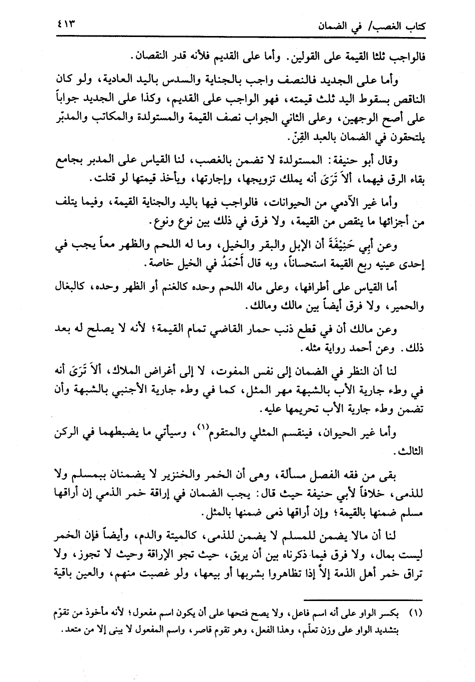 بقى من فقه الفصل مسألة، وهي أن الخمر والخنزير لا يضمنان للمسلم ولا للذمي، خلافاً لأبي حنيفة حيث قال: يجب الضمان في إراقة خمر الذمي إن أراقها مسلم ضمنها بالقيمة؛ وإن أراقها ذمي ضمنها بالمثل.