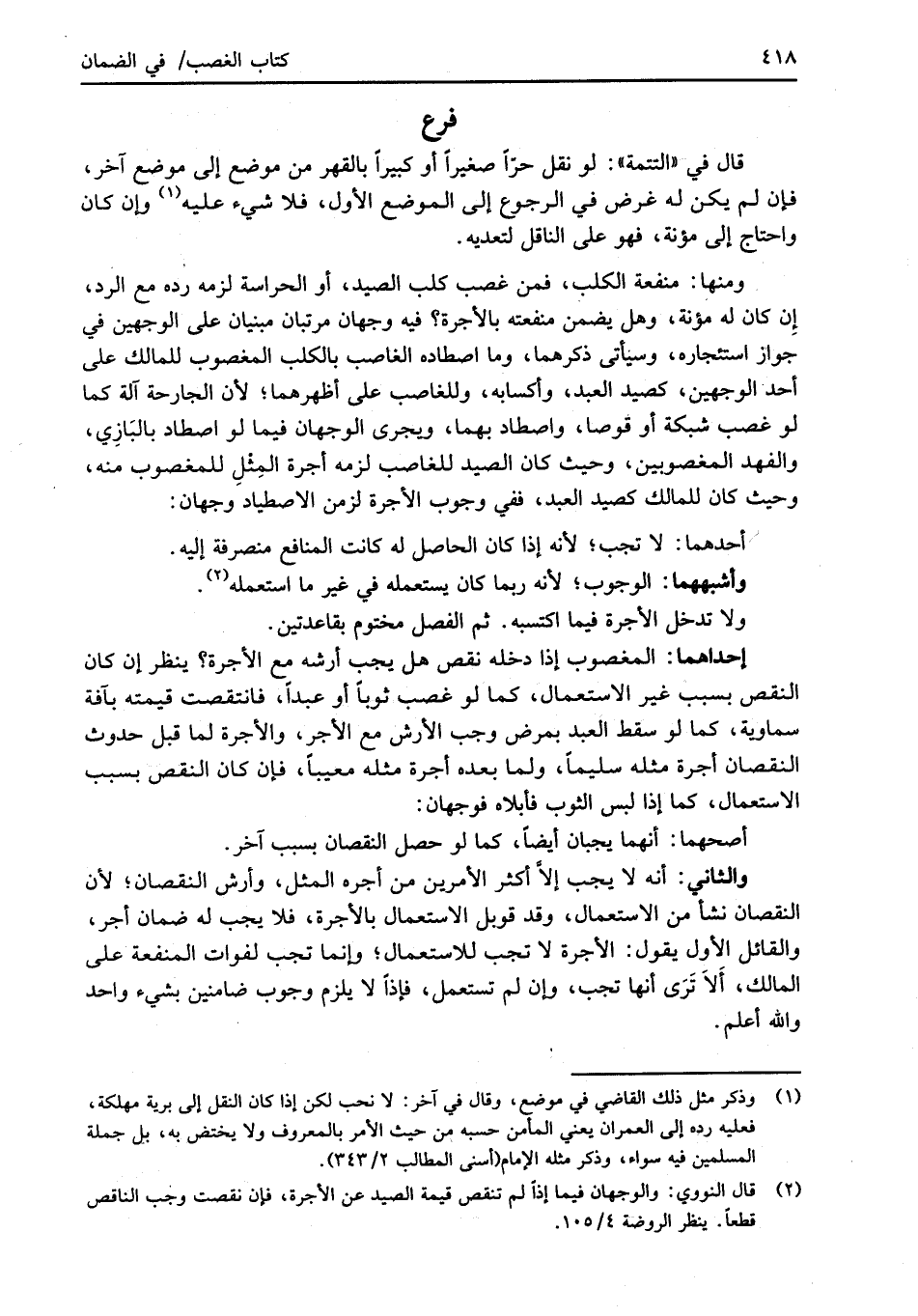 (¬2) قال النووي: والوجهان فيما إذا لم تنقص قيمة الصيد عن الأجرة، فإن نقصت وجب الناقص قطعاً. ينظر الروضة 4/ 105.