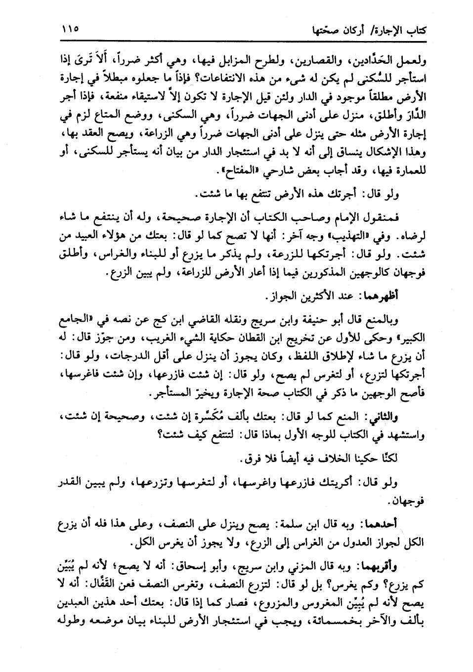 ولعمل الحَدَّادين، والقصارين، ولطرح المزابل فيها، وهي أكثر ضرراً، أَلاَ تَرىَ إذا استأجر للسُّكنى لم يكن له شئ من هذه الانتفاعات؟ فإذا ما جعلوه مبطلاً في إجارة الأرض مطلقاً موجود في الدار ولئن قيل الإجارة لا تكون إلاَّ لاستيقاء منفعة، فإذا أجر الدَّارَ وأطلق، منزل على أدنى الجهات ضرراً، وهي السكنى، ووضع المتاع لزم في إجارة الأرض مثله حتى ينزل على أدنى الجهات ضرراً وهي الزراعة، ويصح العقد بها، وهذا الإشكال ينساق إلى أنه لابد في استئجار الدار من بيان أنه يستأجر للسكنى، أو للعمارة فيها، وقد أجاب بعض شارحي "المفتاح".