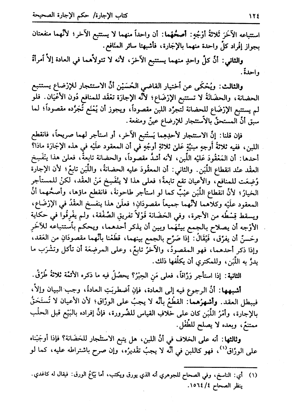 أشبهها: أنَّ الرجوع فيه إلى العادة، فإنِ اضطربَتِ العادةُ، وجب البيان وإلاَّ، فيبطل العقد. وأشهرهما: القطْعُ بأنَّه لا يجبُ على الورَّاق؛ لأن الأعيان لا تُستَحَقُّ بالإجارة، وأمْرُ اللَّبَن كان على خلافِ القياس للضَّرورة، فإنَّ إفراده بالبَيْع قبل الحلْب ممتنعٌ، وبعده لا يصلح للطِّفْل.