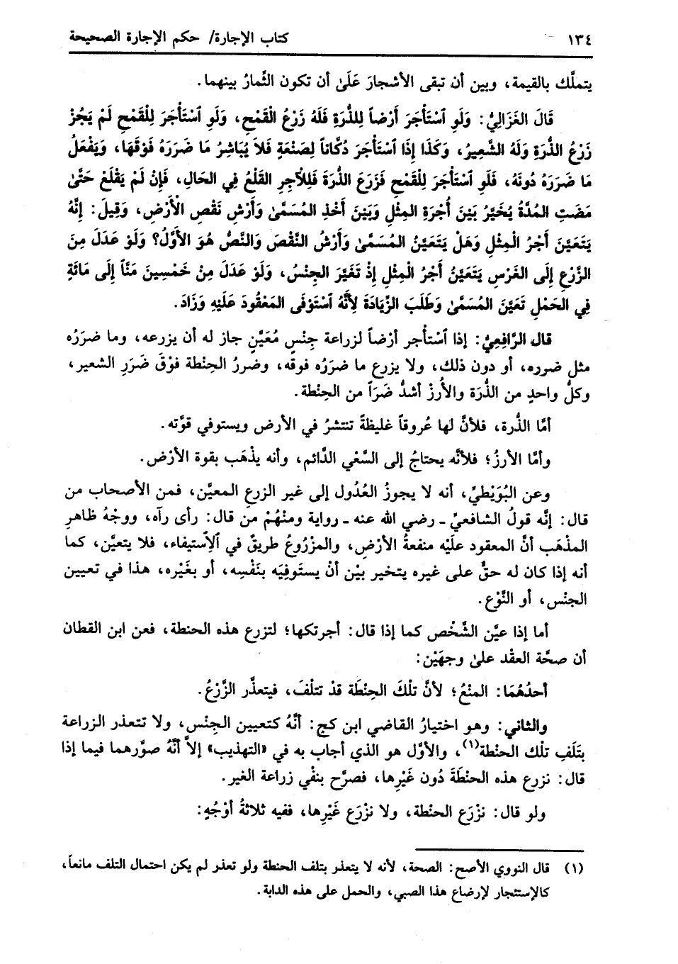 قال الرَّافِعِيُّ: إذا اسْتأْجر أرْضاً لزراعة جِنْسٍ مُعَيَّنِ جاز له أن يزرعه، وما ضرَرُه مثل ضرره، أو دون ذلك، ولا يزرع ما ضرَرُه فوقه، وضررُ الحِنْطة فوْقَ ضَرَرِ الشعير، وكلُّ واحدٍ من الذُّرَة والأُرزْ أشدُّ ضَرَاً من الحِنْطة.