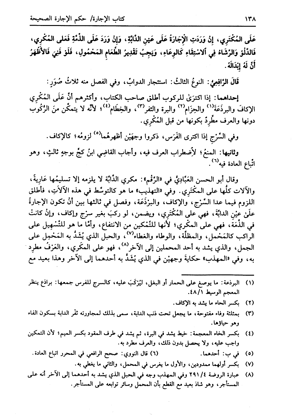 (¬8) عبارة الروضة 4/ 291 أو في المهذب وجه في الحبل الذي لد به أحدهما إلى الآخر أنه على المستأجر، وهو شاذ بعيد مع القطع بأن المحمل وسائر توابعه على المستأجر.