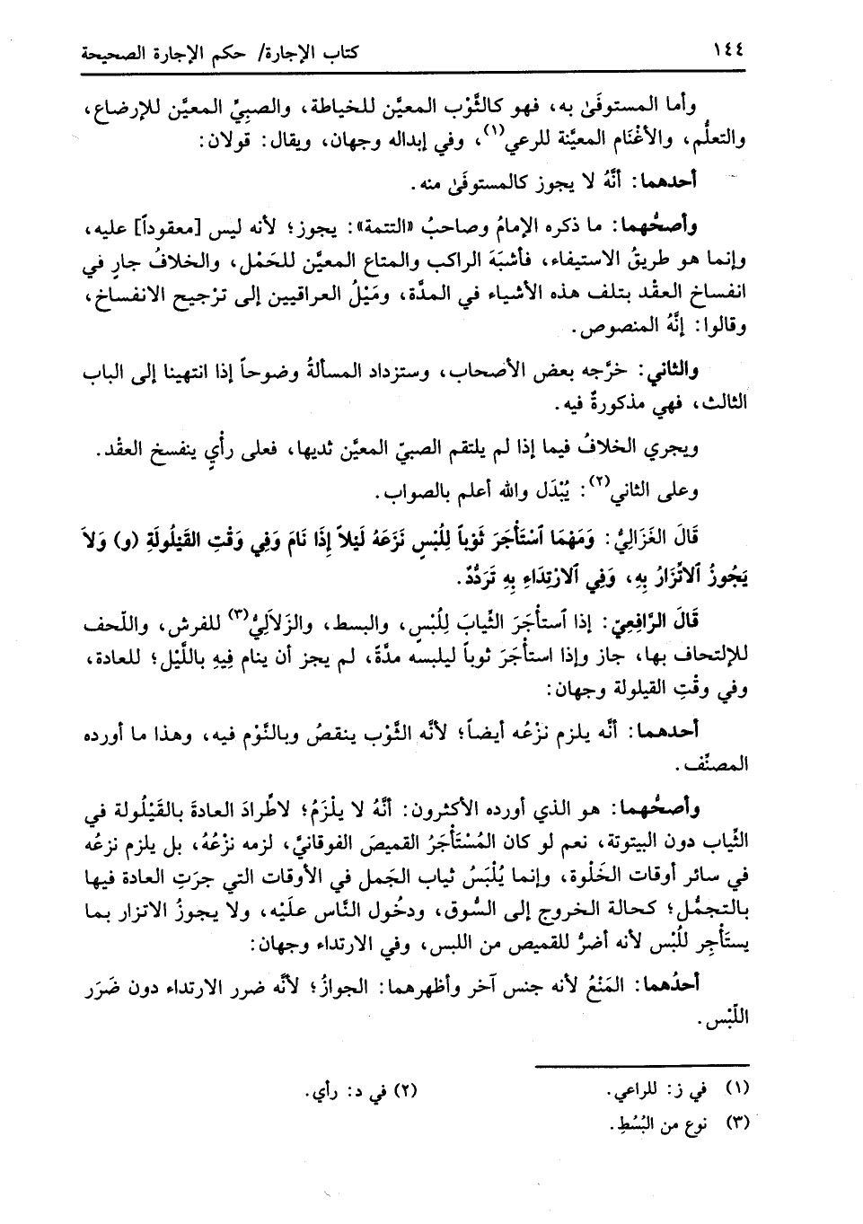 قَالَ الرَّافِعِيّ: إذا استأْجَرَ الثِّيابَ لِلُبْسِ، والبسط، والزَلاَلِيُّ (¬3) للفرش، واللّحف للإلتحاف بها، جاز وإذا استأْجَرَ ثوباً ليلبسه مدَّةً، لم يجز أن ينام فِيهِ باللَّيْل؛ للعادة، وفي وقْتِ القيلولة وجهان: